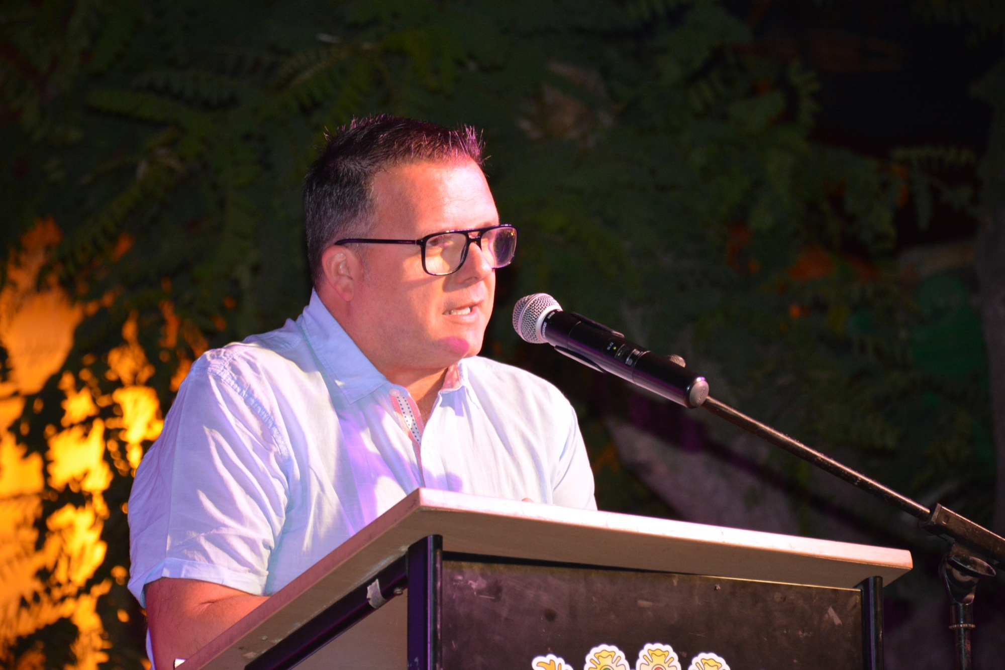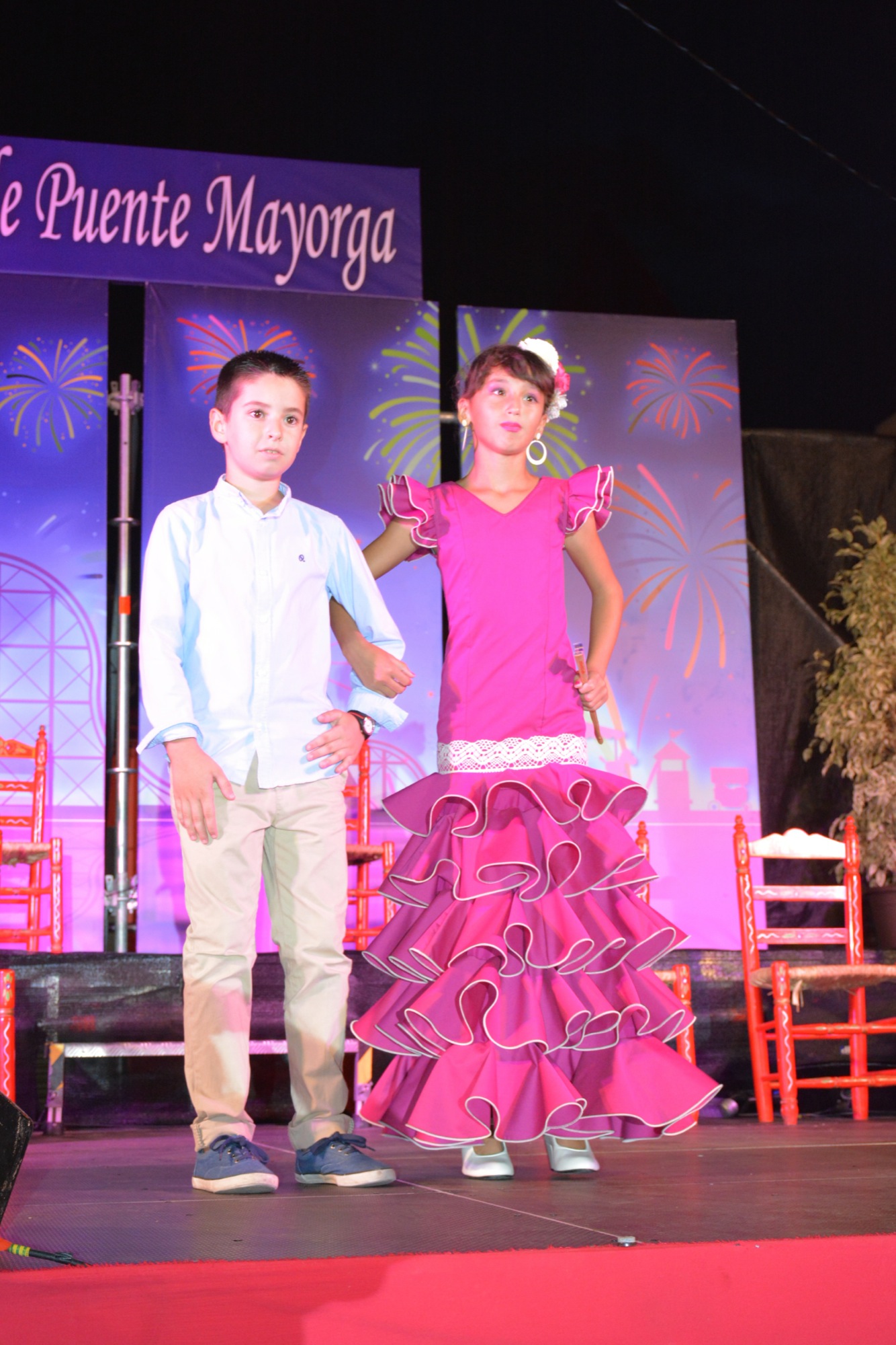 La noche comenzó con el desfile de los cortejos infantil y juvenil, tras el cual Ricardo Durán pronunció un simpático pregón en el que recordó sus años como cofundador de la Asociación Juvenil La Esquina y de la caseta de este colectivo. En varias ocasiones bromeó con el público y con el alcalde, Juan Carlos Ruiz Boix, que es amigo suyo de toda la vida, y su conclusión fue que en feria hay que divertirse acorde a la edad de cada uno, pero siempre intentando pasárselo bien.