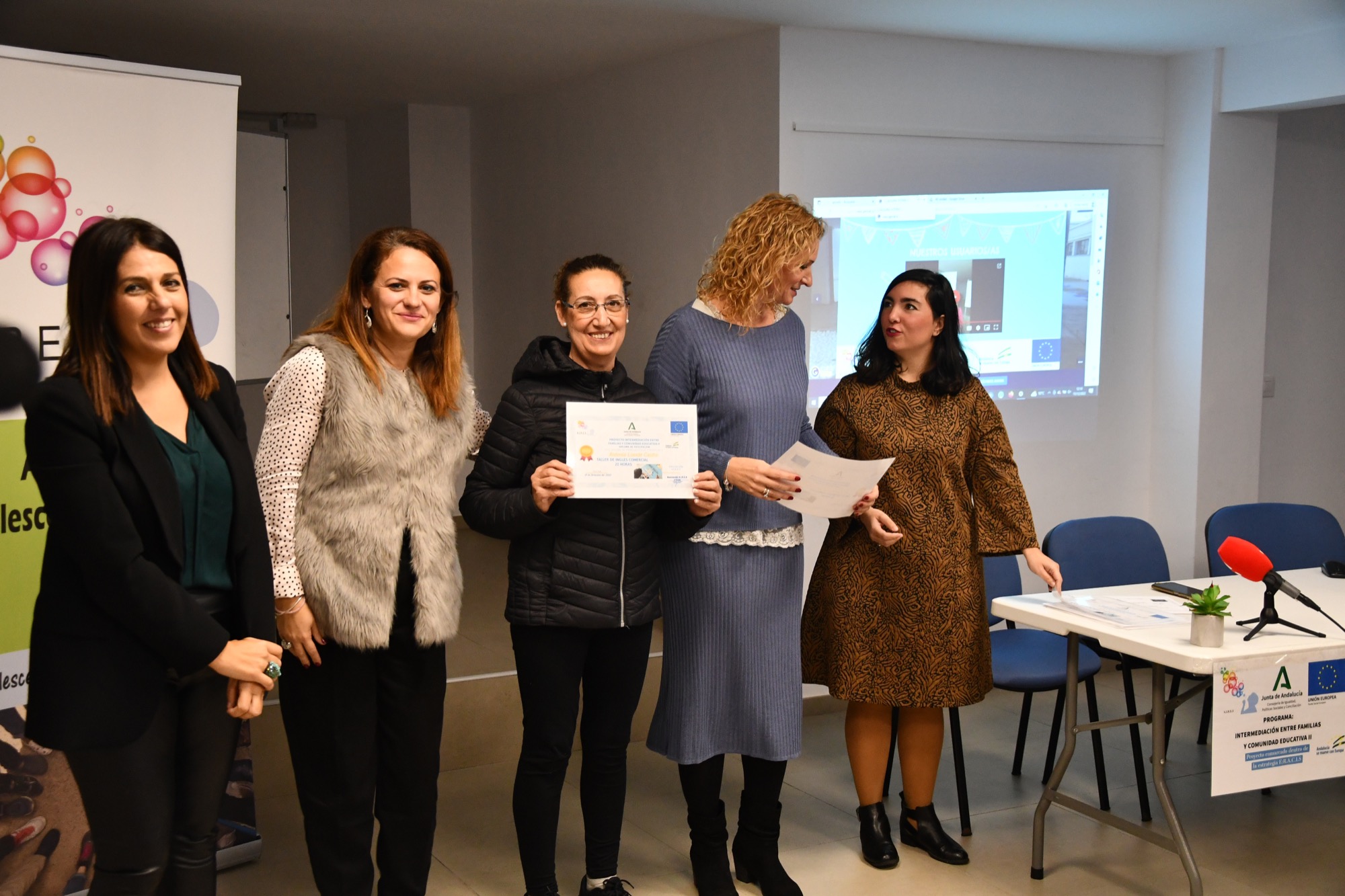 La teniente de alcalde de Bienestar Social e Igualdad, y responsable del Distrito de la Bahía, Mónica Córdoba, participó en la clausura, junto a la teniente de alcalde de Educación, Belén Jiménez, y las tres técnicas que han desarrollado el proyecto, que ha tenido financiación europea y ha atendido a más de 200 personas.