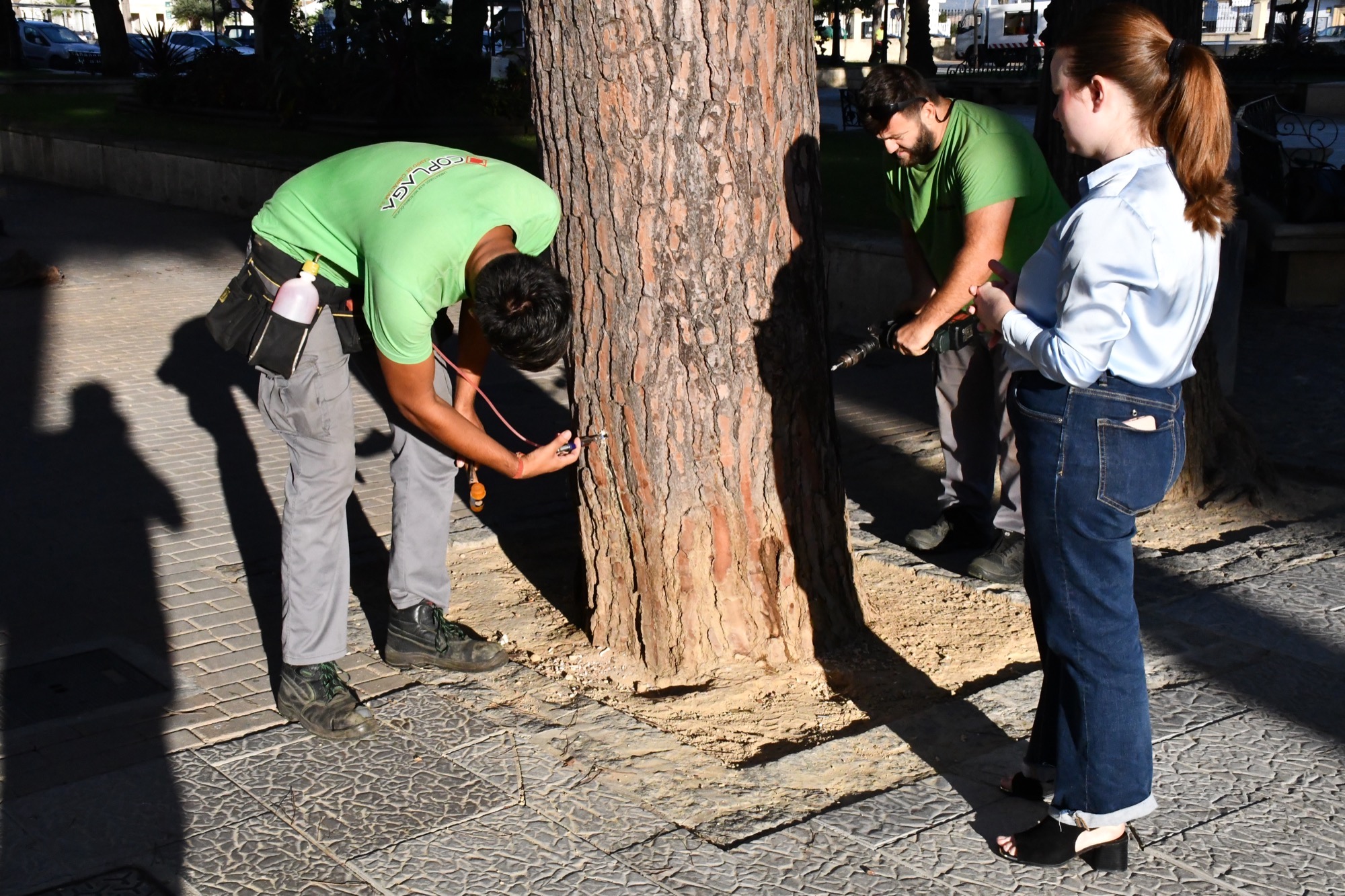 La Delegación de Salud del Ayuntamiento de San Roque ha encomendado a la empresa Coplaga, adjudicataria de la lucha contra las plagas en el municipio, que inicie el tratamiento de endoterapia en los pinos repartidos por todas las zonas urbanas del municipio, dando prioridad a los situados en centros educativos y en espacios muy frecuentados. La concejal de Salud, Rocío Fernández, ha supervisado esta labor mientras se llevaba a cabo en los pinos de la Alameda Alfonso XI.
