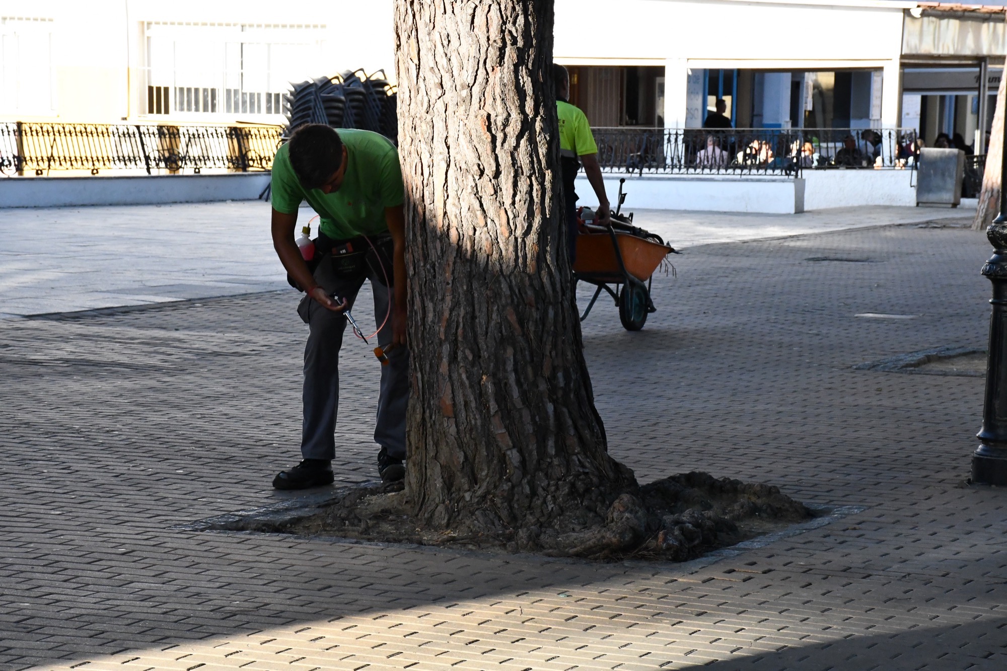 Con el objetivo de evitar la proliferación de la oruga de la procesionaria del pino en los primeros meses de 2026, este jueves se ha iniciado en la Alameda Alfonso XI el tratamiento de endoterapia en todos los pinos de las zonas urbanas del municipio. Estas inyecciones no suponen ningún daño para el árbol, pero sí resultan fatales para los insectos, que fallecen antes de convertirse en un peligro potencial para niños y mascotas.