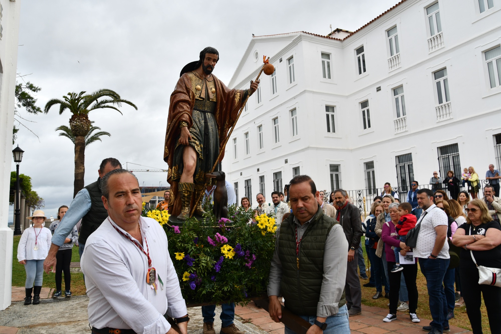 El alcalde, Juan Carlos Ruiz Boix, la concejal de Tradiciones, María del Mar Collado, y varios ediles acompañaron en la salida del santo a la agrupación parroquial, que encabeza Sonia Ibáñez. Ruiz Boix destacó que “esta romería nos llevará hoy de caminata atravesando la Finca La Alcaidesa para finalizar en nuestra joya de la corona, el paraje natural propiedad de todos los sanroqueños y las sanroqueñas como es el Pinar del Rey”.