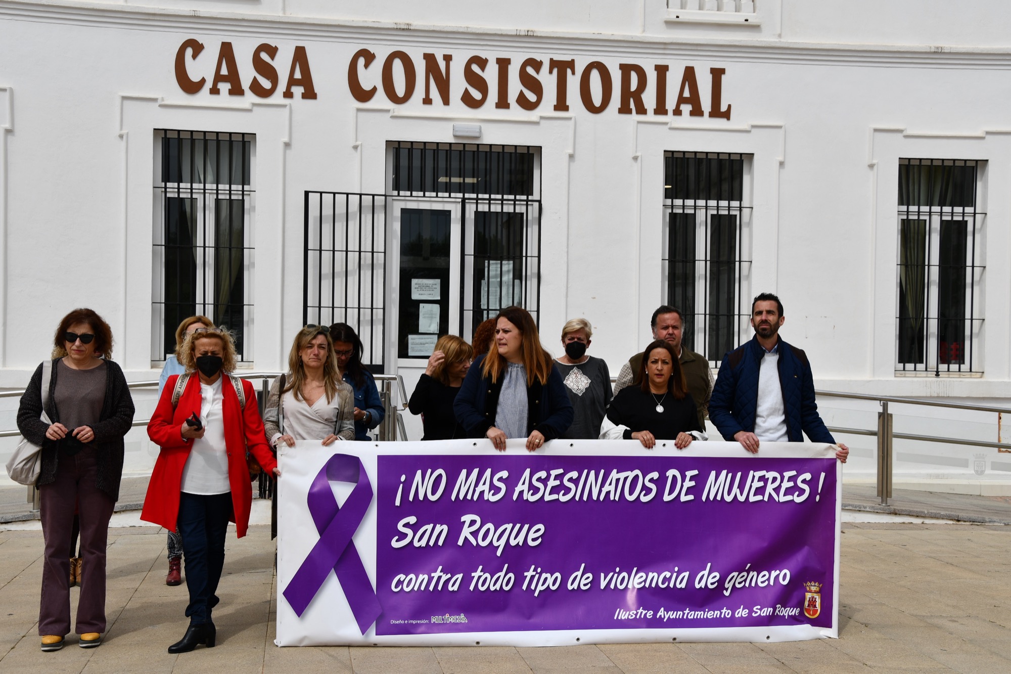 La teniente de alcalde delegada de Igualdad, Mónica Córdoba, ha encabezado la concentración, convocada por el Centro de Información a la Mujer (CIM), y sostenía junto a otros miembros del Equipo de Gobierno una pancarta con el lema “¡No más asesinatos de mujeres! San Roque, contra todo tipo de violencia de género”.