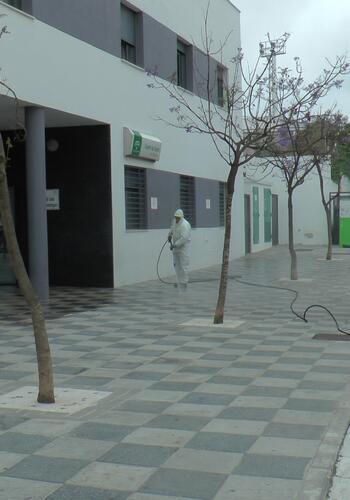 Este plan está en marcha desde que el país se encuentra en estado de alarma por coronavirus. Se realizan a diario desinfecciones y limpiezas a entradas y fachadas de farmacias, centros de salud, residencias de mayores, comercios de alimentación, y en calzadas, vías, acercados y espacios públicos.