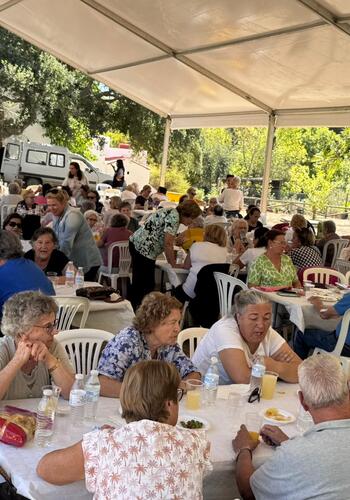 Una vez allí han realizado una ruta para conocer el paraje y hacer un poco de ejercicio, después se les ha ofrecido un arroz que han comido en mesas montadas junto al Aula de la Naturaleza. Por último, la convivencia se alargó hasta la tarde con música y bailes.