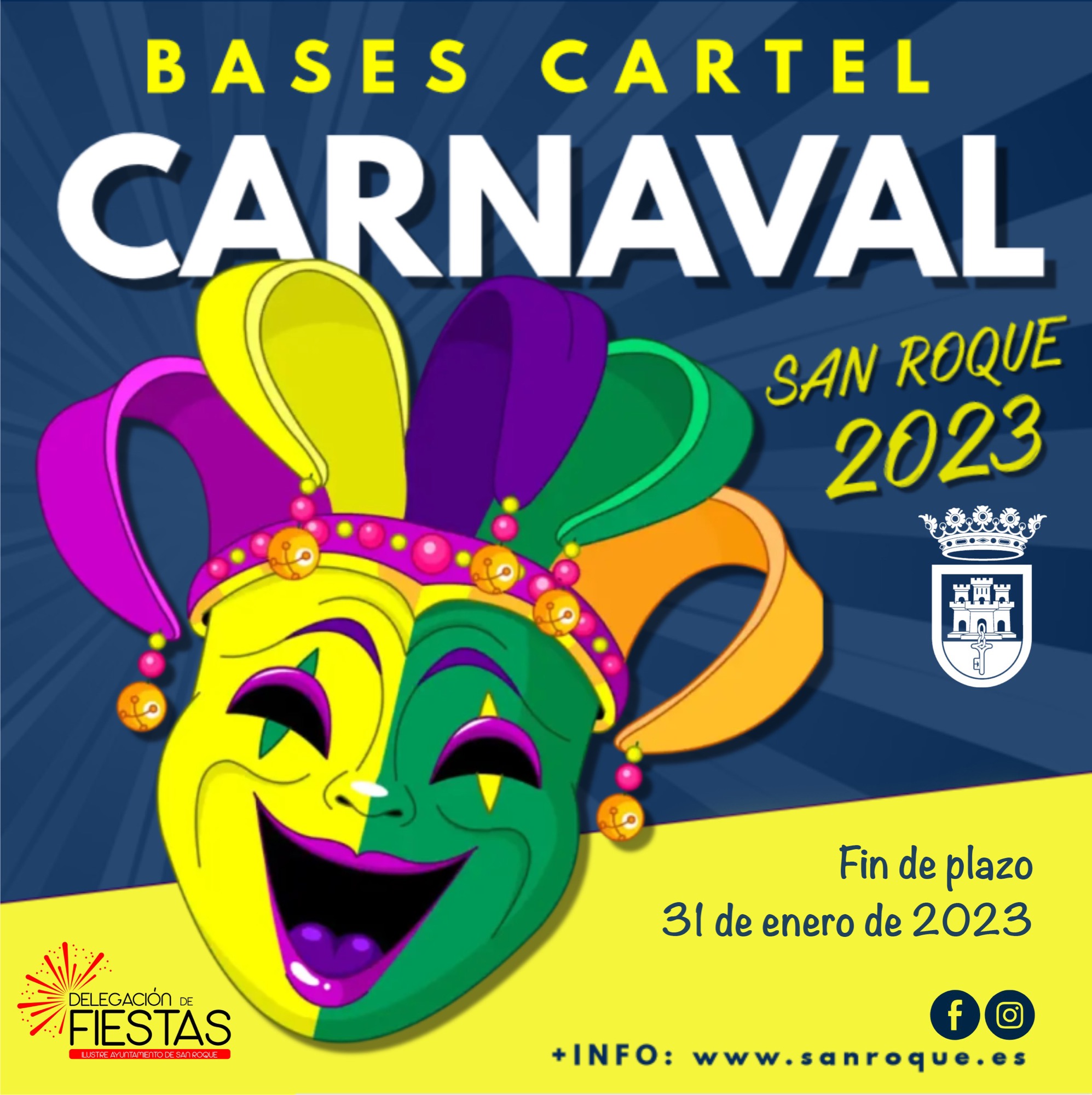 La Delegación de Fiestas ha convocado el concurso para el cartel anunciador del Carnaval de San Roque 2023. El plazo de presentación de originales finaliza el día 31 de enero y el premio está dotado con 300 euros y dos abonos para el concurso de agrupaciones.