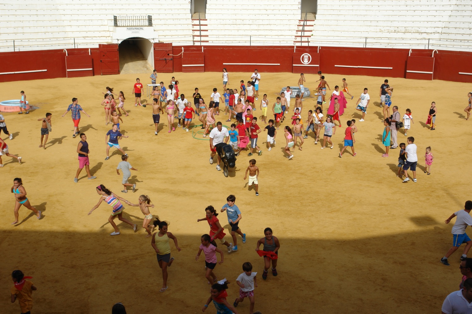 Más de dos centenares de niños, acompañados de sus padres, participaron en una loable iniciativa: que los niños pudieran vivir la experiencia del Toro del Aguardiente sin correr peligro. Y lo consiguieron.    Miembros de la peña del Toro se turnaron para embestir sin peligro con un carretón negro zaíno bragao a los niños desde el llano de la plaza de Toros y después en el interior del coso.    Poco después de las 6 de la tarde, los niños fueron llamados al exterior, y del interior de una furgoneta apareció un toro negro de cartón piedra que los persiguió sin cesar, mientras los centenares de niños gritaban, corrían y reían.    Sin duda alguna, para estos ‘locos bajitos’ es una sensación especial poder correr este toro  de la ganadería ‘Cartón piedra’ y astifino. El propósito de enseñar a niños a correr el toro del Aguardiente se logró.    Tras más de media hora de corretear al toro en el ruedo y viceversa, los niños participaron en juegos tradicionales preparados por la peña, que entregó posteriormente regalos, como tickets para distintas atracciones de la Feria.    La Peña había instalado una pequeña barra con refrescos a precios muy económicos y aprovechó para vender, como es tradicional, pañuelos del Toro del Aguardiente, que el lunes por la mañana lucirán los corredores del Toro del Aguardiente de verdad.