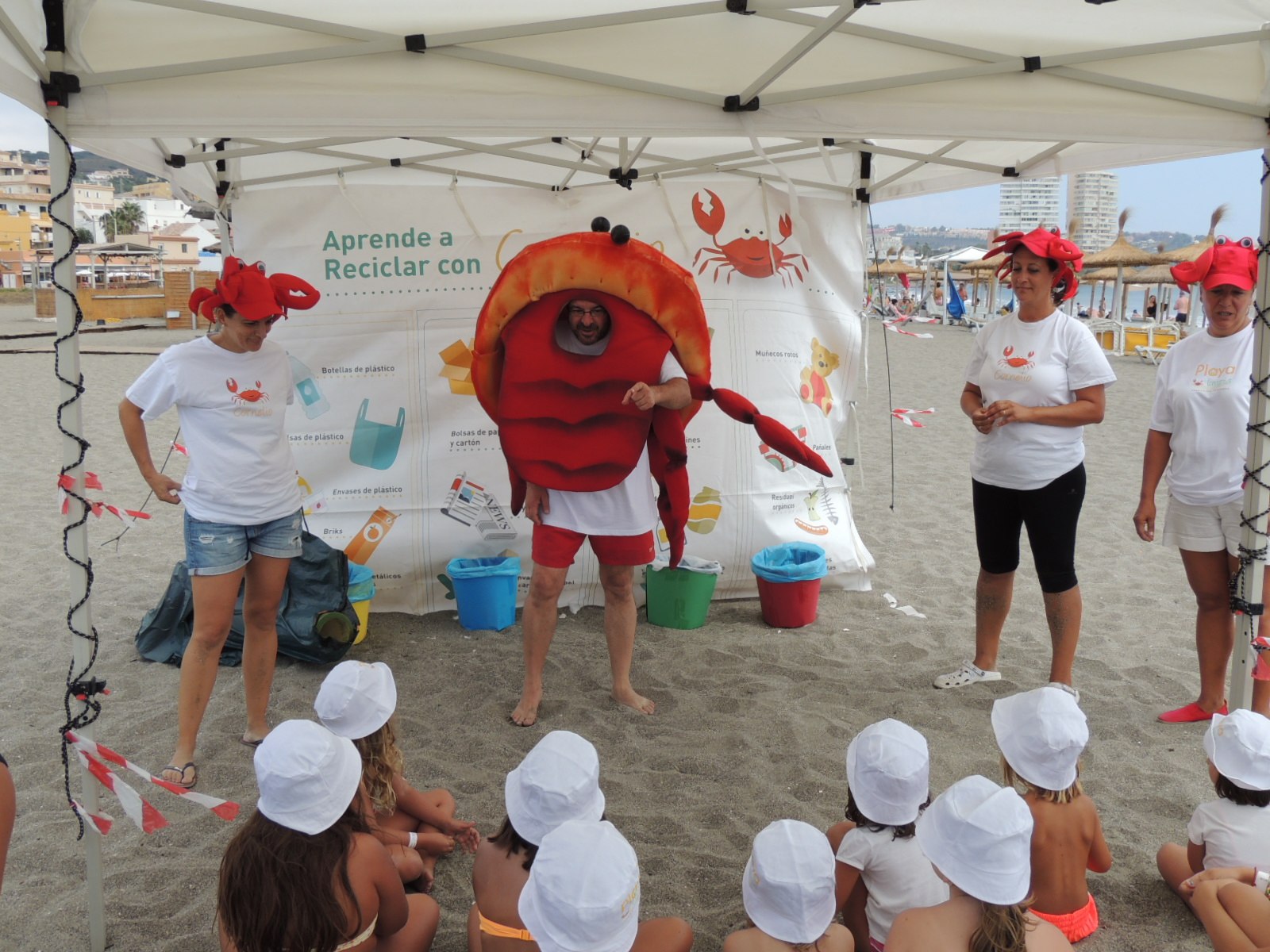 Las actividades de 'Playa Limpia' se realizan de 12 a 14 horas y de 17:30 a 19:30 horas. Al igual que en las ediciones anteriores, se han desarrollado cuentacuentos con la mascota, el Cangrejo Cornelio, además de gymkanas y actividades encaminadas a concienciar especialmente a los más pequeños sobre la importancia de mantener limpias las playas, y de reciclar las basuras, cuidando así del litoral.