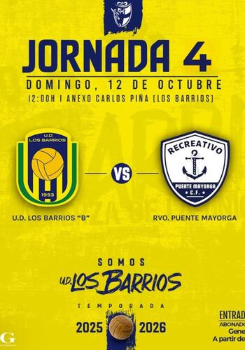 El Recreativo Puente Mayorga Club de Fútbol vuelve a la carga, al mediodía de este domingo, en un nuevo derbi comarcal de Tercera Andaluza Cádiz. Los sanroqueños, líderes del grupo 1 de esta categoría, juegan en el Polideportivo San Rafael para enfrentarse a la Unión Deportiva Los Barrios “B” en su propio terreno.