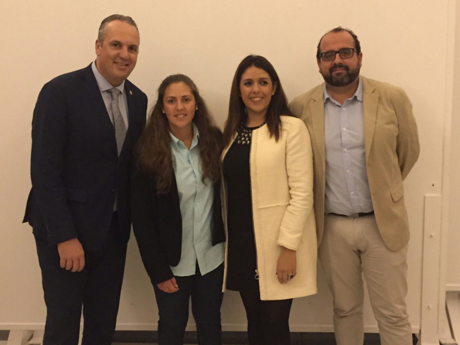 El alcalde de San Roque, Juan Carlos Ruiz Boix, acompañó la golfista sanroqueña María Parra a recoger su premio Cádiz Joven, otorgado por el Instituto Andaluz de la Juventud de la Junta de Andalucía, por conseguir el pase al Circuito Europeo de Profesionales de Golf y cosechar diversos logros en el ámbito de esta disciplina deportiva.