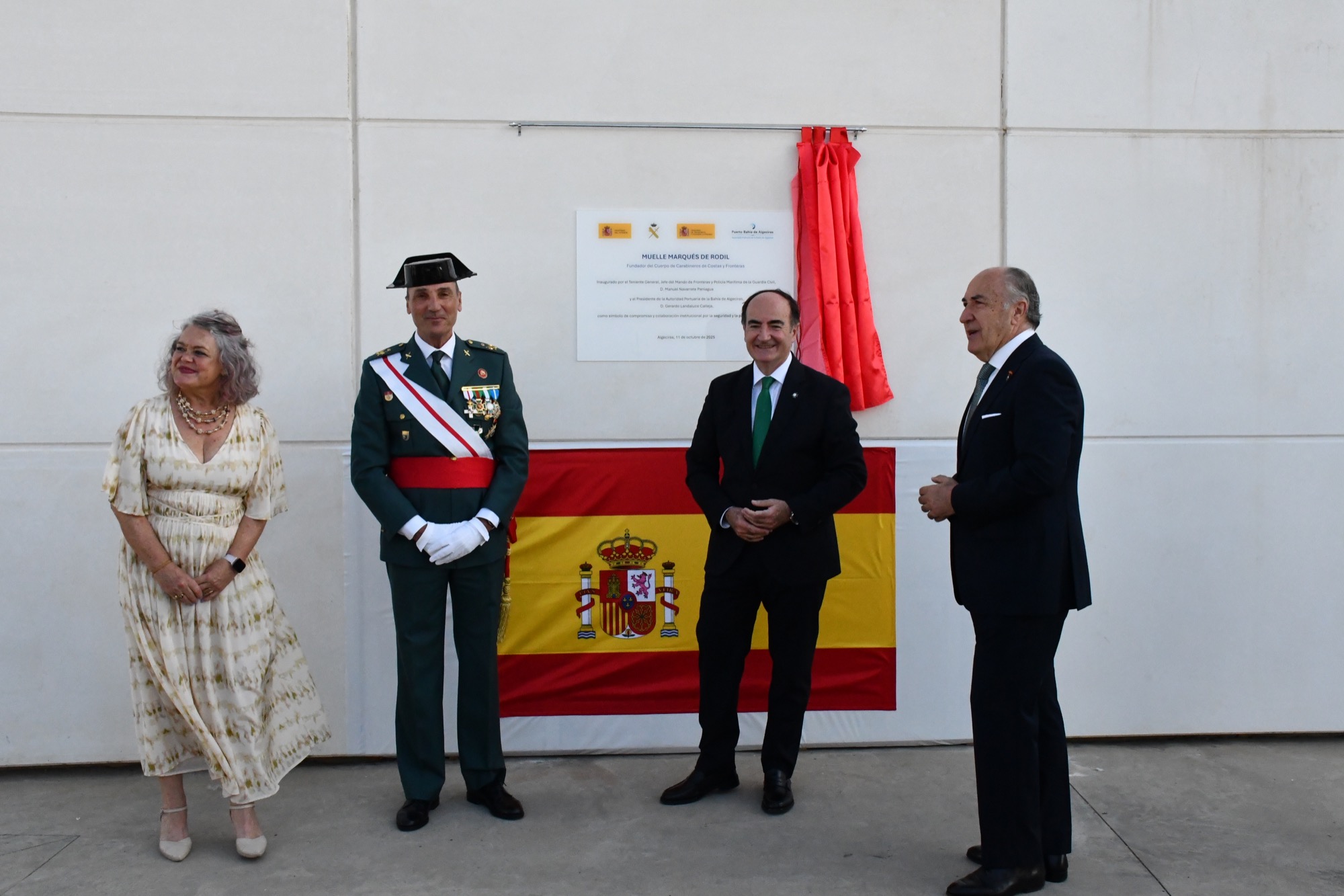 Los actos han estado presididos por el Teniente General, Jefe del Mando de Fronteras y Policía Marítima de la Guardia Civil, Manuel Navarrete, que junto al presidente de la Autoridad Portuaria, Gerardo Landaluce, han procedido a la inauguración del nuevo muelle. Unas instalaciones que llevarán el nombre de Muelle Marqués de Rodil, en homenaje a José Ramón Rodil y Gayoso, prestigioso militar al que, en el siglo XIX, el Ministerio de Hacienda encomendó la organización del Real Cuerpo de Carabineros de Costas y Fronteras para impedir el contrabando.