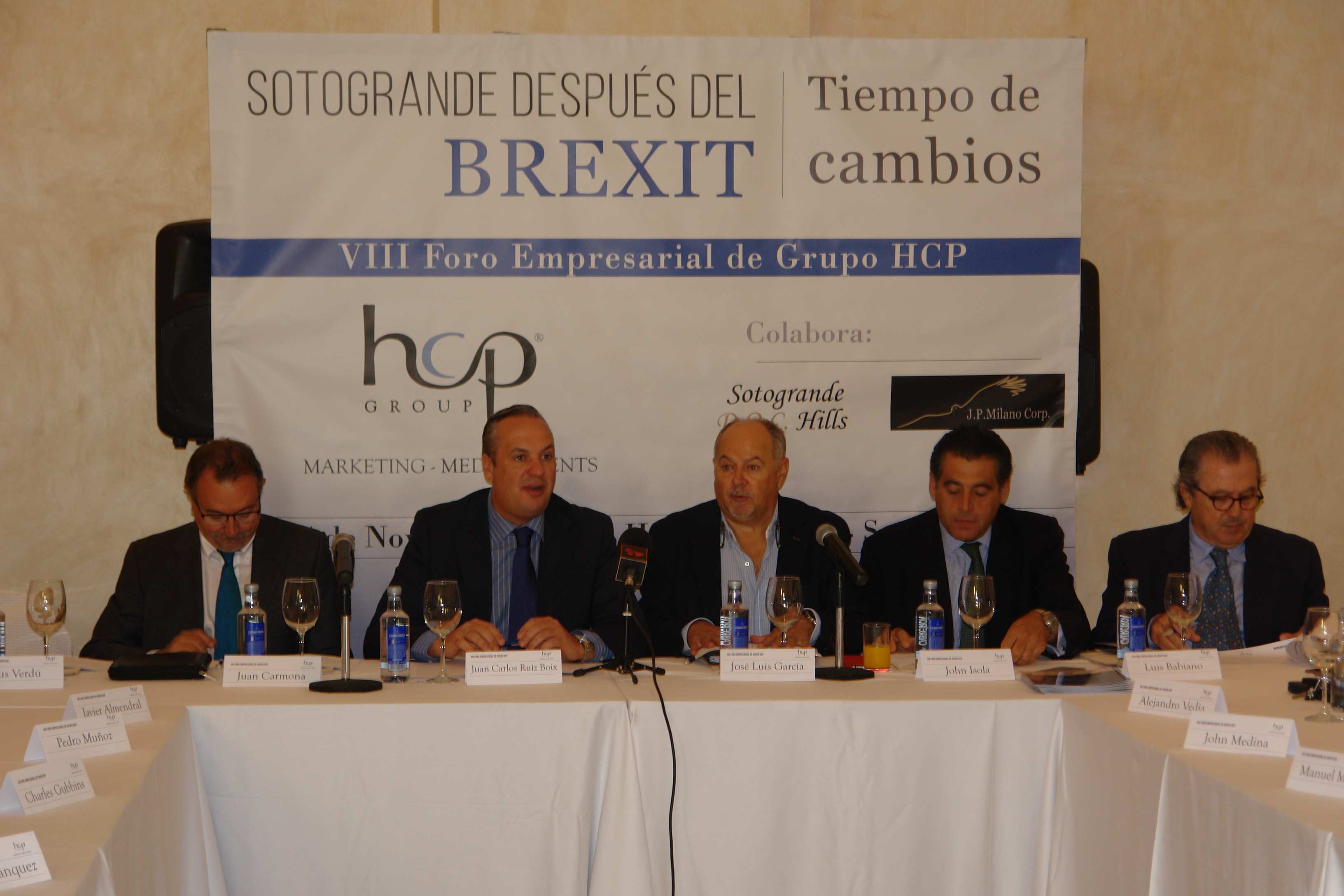 La aprobación en referendum de la salida del Reino Unido de la Unión Europea, el proceso conocido como “Brexit”, ha hecho surgir una serie de incertidumbres en la economía campogibraltareña. En Sotogrande la presencia británica es muy importante, y por ello el Grupo HCP ha dedicado su octavo foro empresarial a este asunto. El alcalde, Juan Carlos Ruiz Boix, ha intervenido en la inauguración de esta actividad en un hotel de Sotogrande.