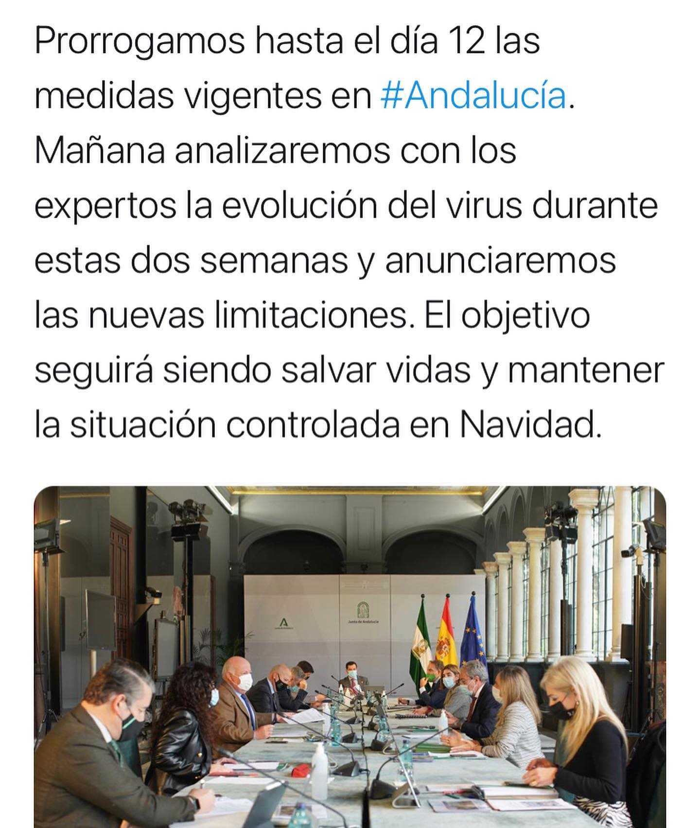 Recuerda el alcalde que “el día 10 de diciembre está más cerca, y la decisión inicial es seguir igual al menos hasta el sábado día 12, aunque mañana conoceremos el nuevo escenario, que será, entiendo, desde el sábado hasta las navidades”.
