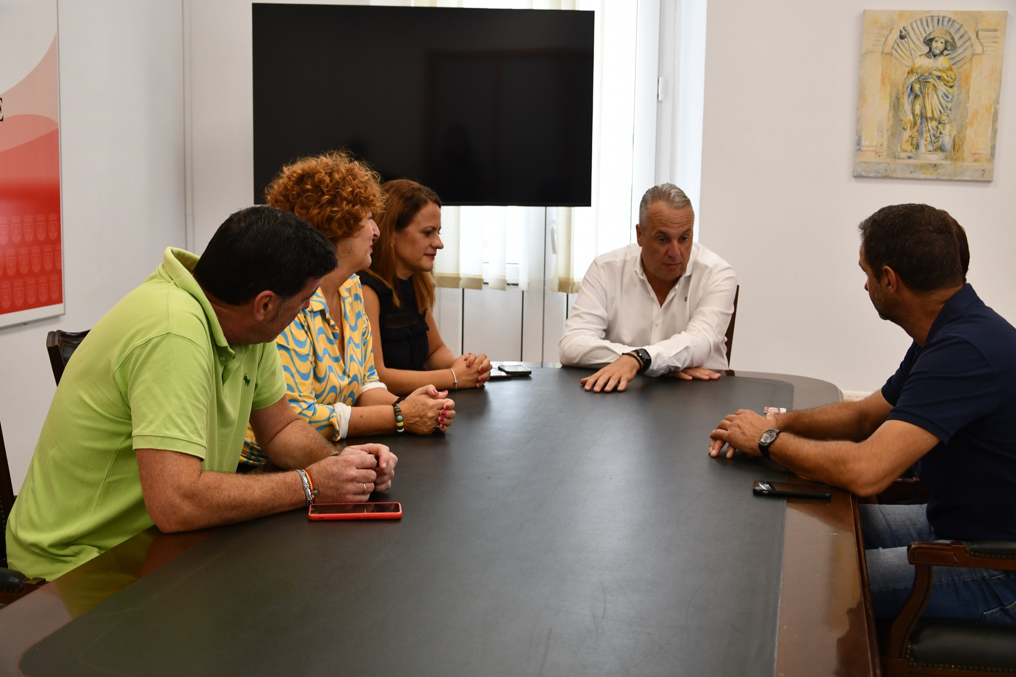 El alcalde de San Roque, Juan Carlos Ruiz Boix, recibió hoy viernes a la nueva Junta Directiva del C.D. San Roque, encabezada por Alfonso Collado, en un encuentro que marca el inicio del curso 2023/2024. En el encuentro se aseguró el apoyo del ayuntamiento con el club reflejado, entre otras acciones, con la asignación de dos subvenciones para esta temporada.