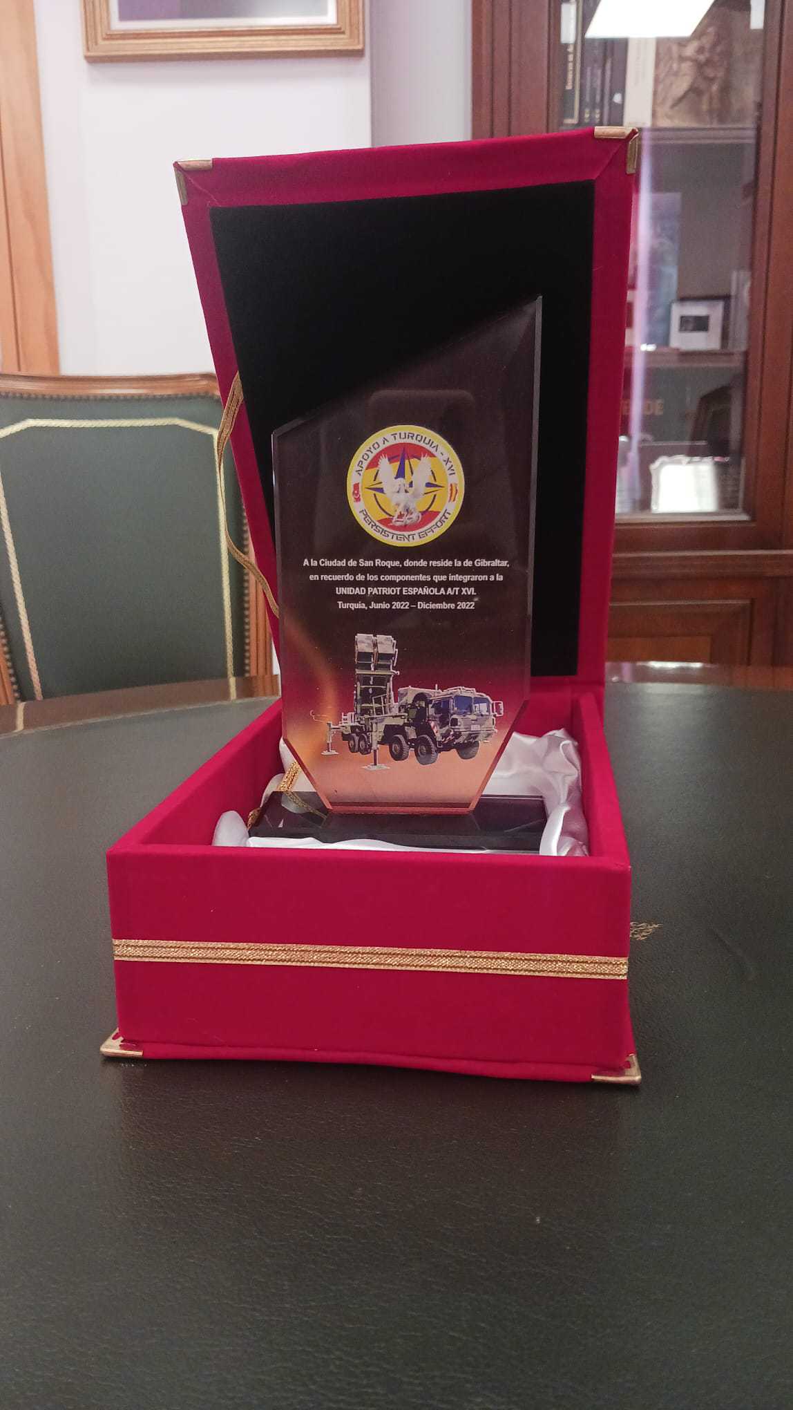 Martín Gallego agradeció al primer edil el buen trato recibido y la colaboración que ha existido durante sus años al frente del grupo con la institución municipal y le ha entregado una placa que conmemora la participación del Grupo de Artillería Antiaérea I/74 en la misión Apoyo a Turquía de la OTAN.