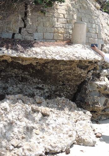 La pérdida de arena en la zona en la que se ubica el búnker, catalogado como número 177, impide en la actualidad el habitual paso peatonal por la playa de los vecinos entre las barriadas de Guadarranque y Puente Mayorga.