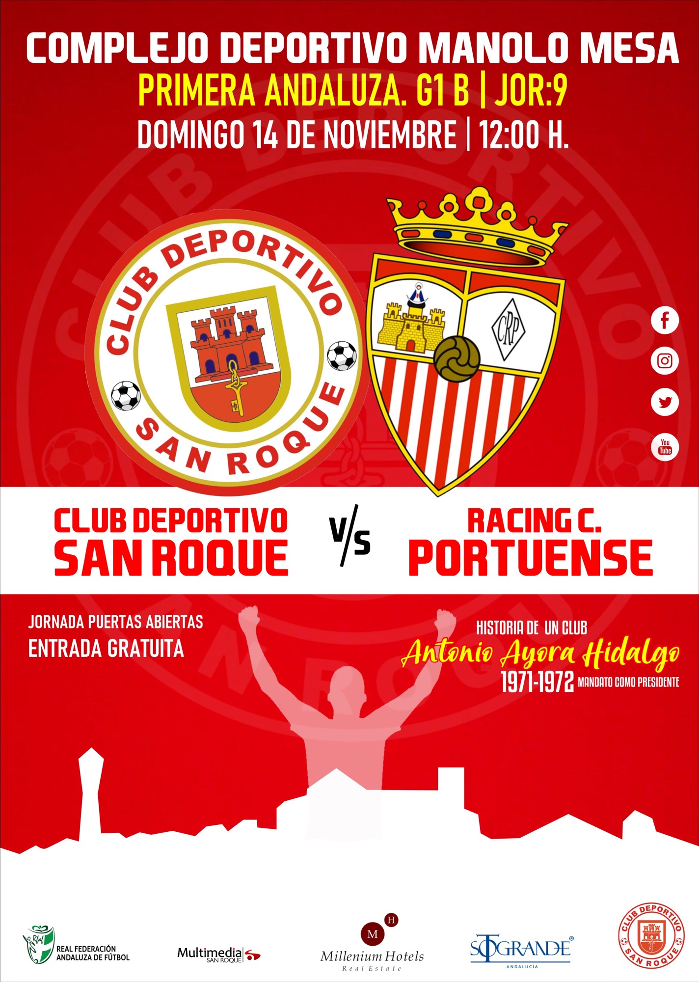 Por otra parte, el Club Deportivo San Roque informa de que para esta próxima jornada en todos los partidos que se jueguen en casa se guardará un minuto de silencio en todas las categorías en memoria de María Isabel Martínez, sanroqueña y última víctima en España de la violencia machista.