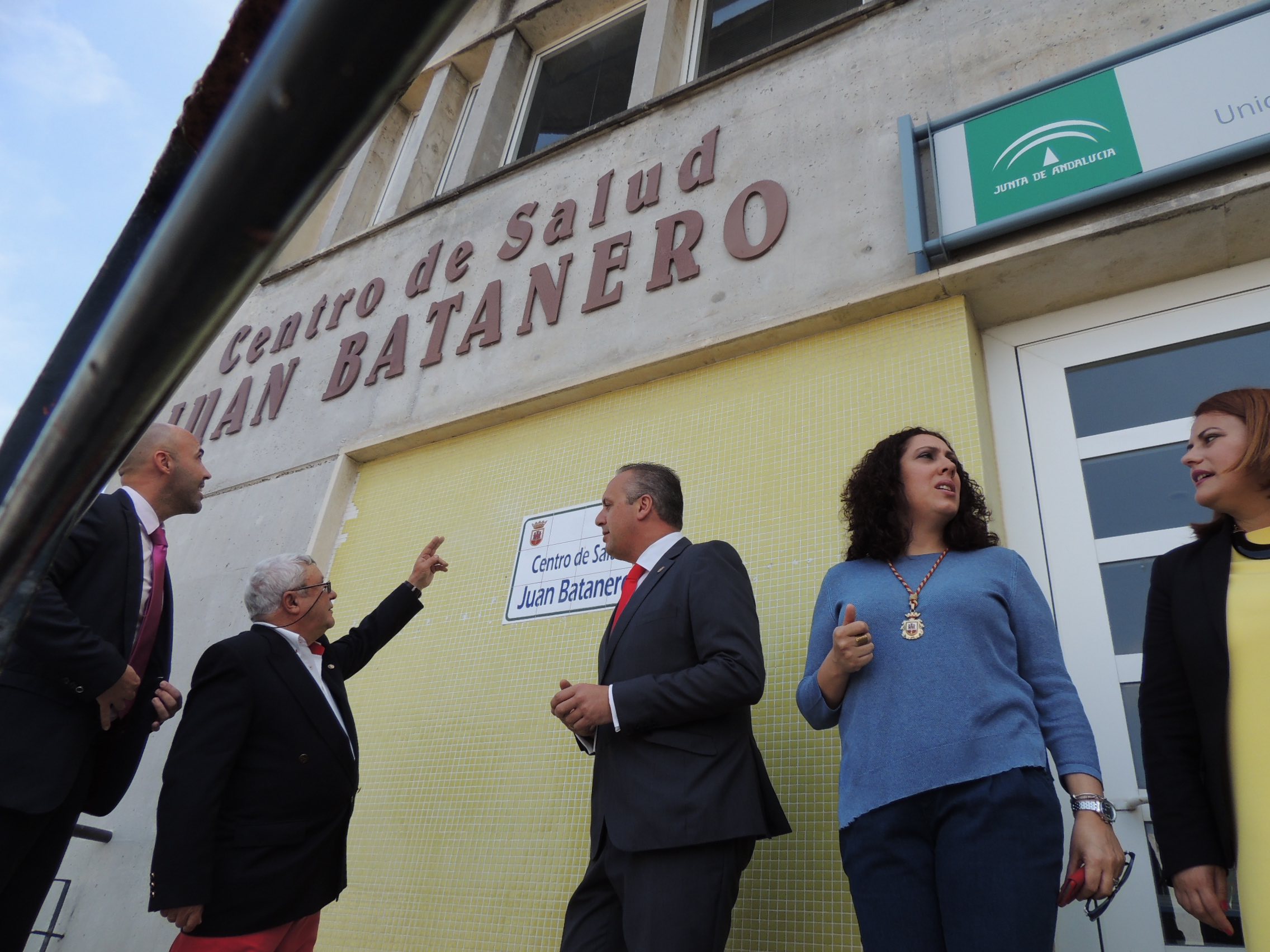 Con motivo del 310 aniversario de la Fundación de la Ciudad, además de los Honores y Distinciones otorgadas en la Sesión Extraordinaria del Pleno, el alcalde de San Roque, Juan Carlos Ruiz Boix, ediles de la Corporación y familiares de Juan Batanero, formalizaron la inauguración de la nueva denominación del centro.