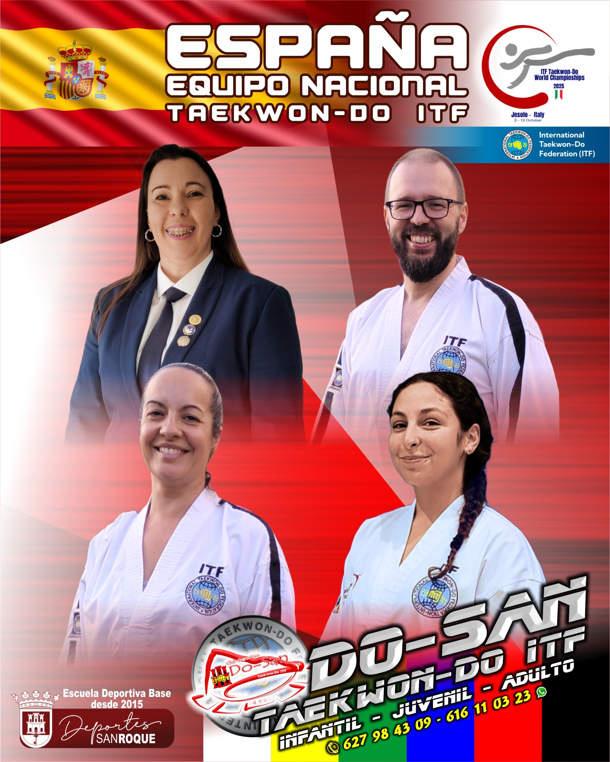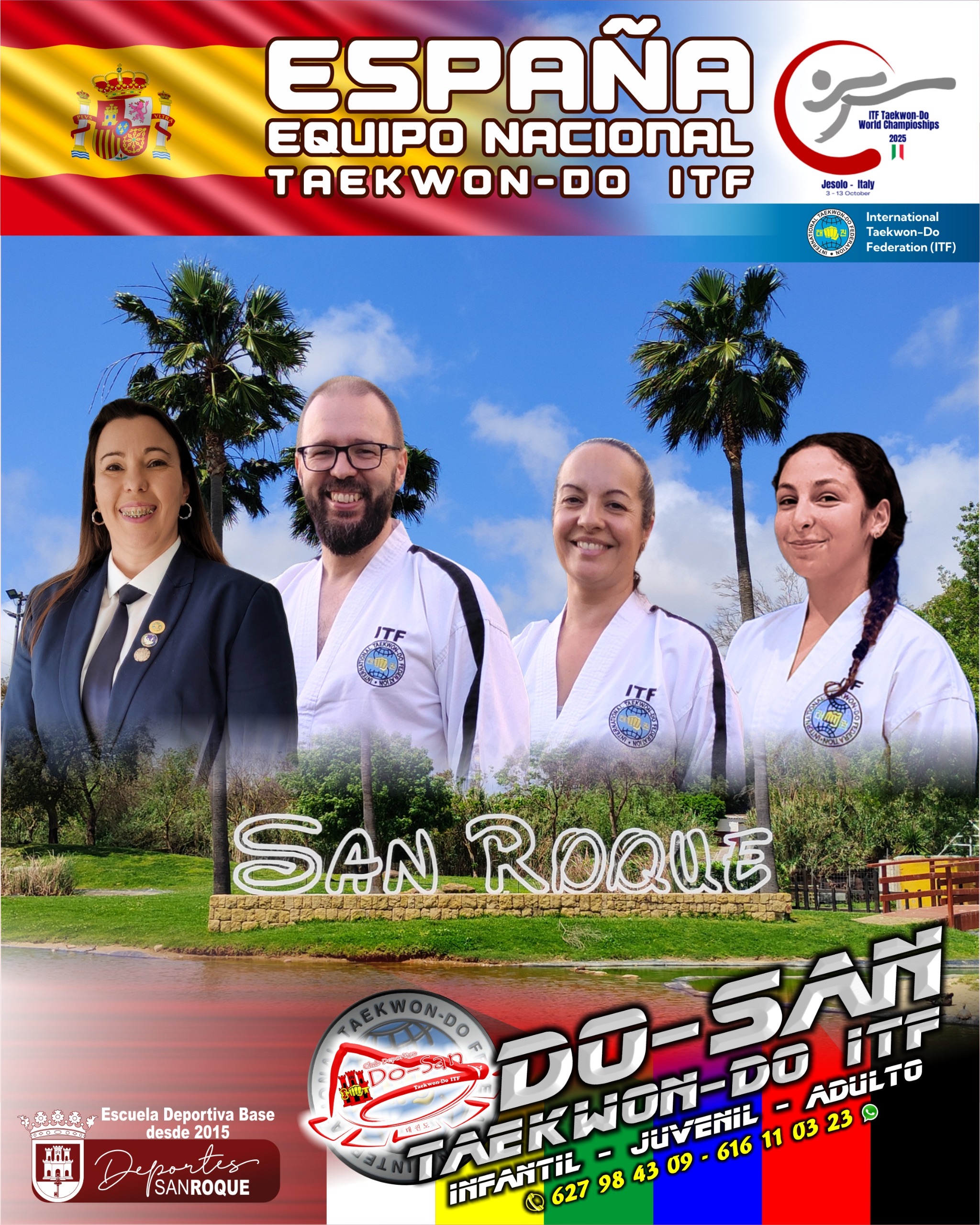 El cuarteto sanroqueño lo completarán los hermanos e instructores de la escuela Israel y Jessica Antequera. Jessica ha sido invitada por la International Taekwon-Do Federation (ITF) para realizar funciones arbitrales como viene siendo costumbre en los últimos años. Los europeos y copa del mundo que tiene de experiencia la catalogan como una árbitro bastante reconocida a nivel internacional. Israel por su parte llevará la responsabilidad de los competidores siendo el “Head Coach” del equipo nacional. Tras haberse proclamado Campeón de Europa este año con el equipo veterano de Tuls aún sigue con ganas de competir, pero las normas del mundial no lo permiten por su alto grado, ya que solo permite a competidores hasta V Dan.