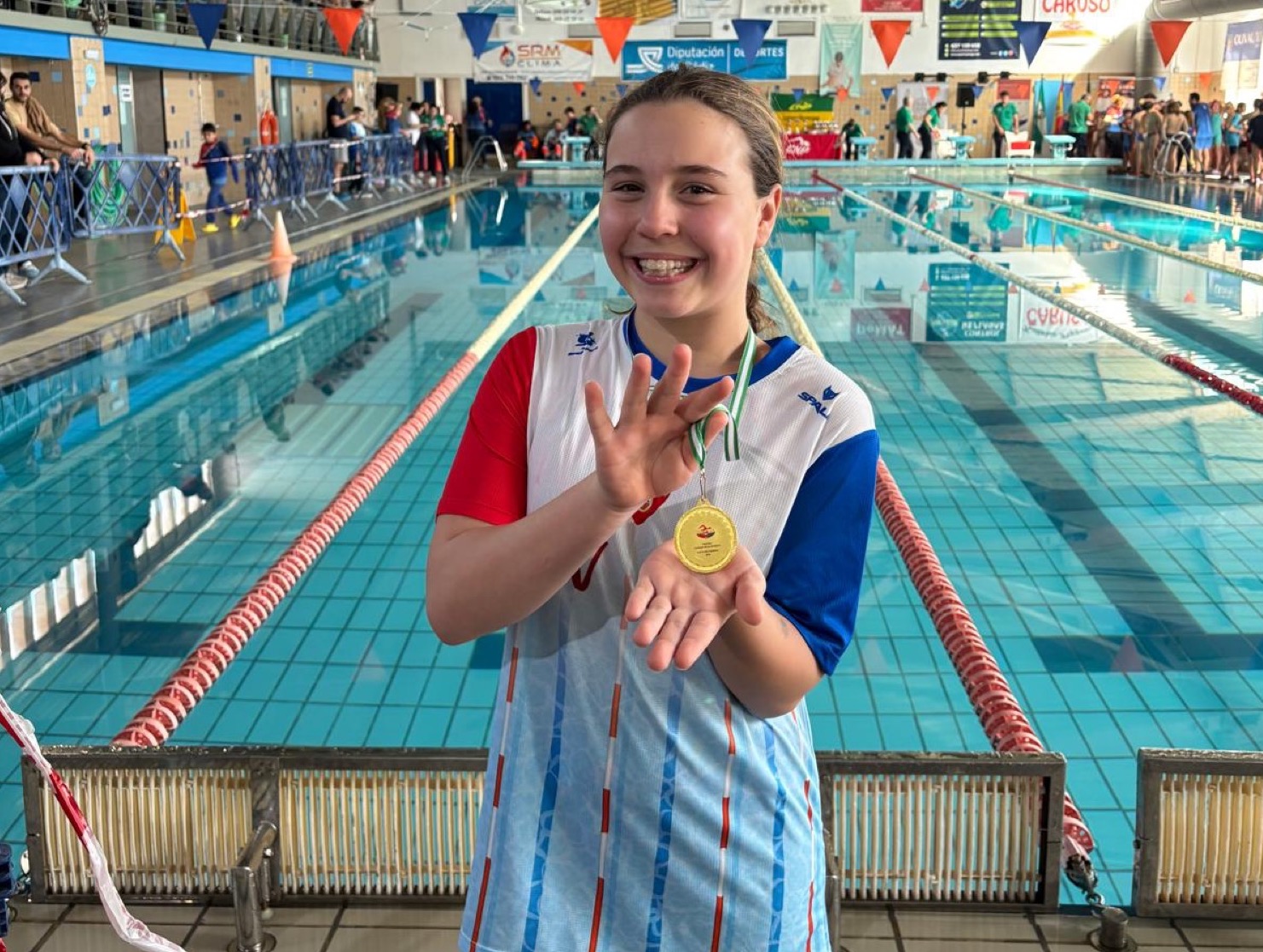 El Club Natación San Roque tuvo una gran actuación en el Trofeo del Puerto de Santa María celebrado el pasado 14 de febrero, con destacadas mejoras de marca y un brillante primer puesto individual en 50 metros libres de la nadadora Elia Paveliuc .