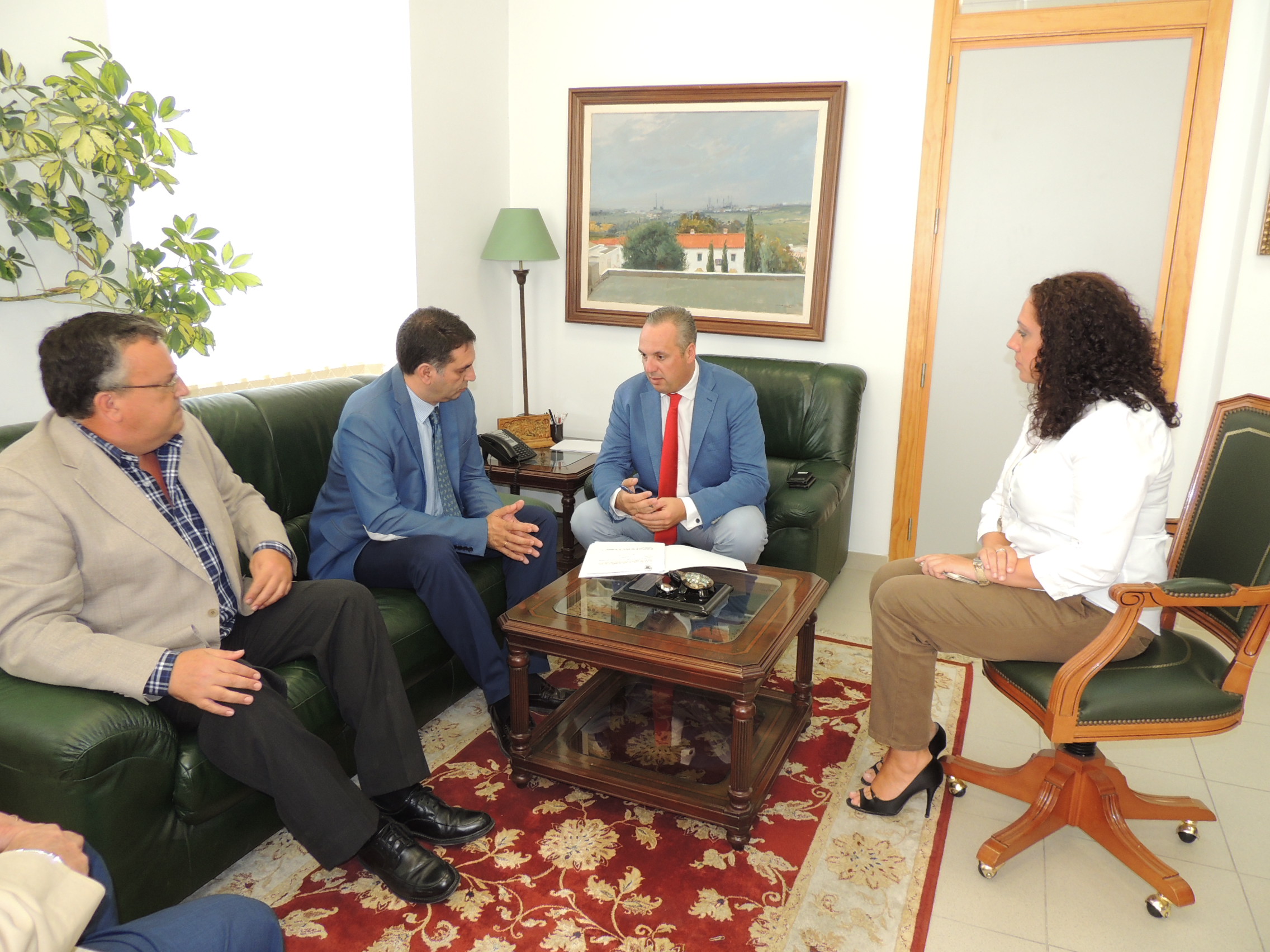 Durante unos minutos, ambos, en compañía de la tte de alcalde de Turismo, Dolores Marchena, y el delegado del gobierno en la comarca, Angel Gavino, han tenido la oportunidad de analizar el papel de San Roque en el panorama turístico internacional.