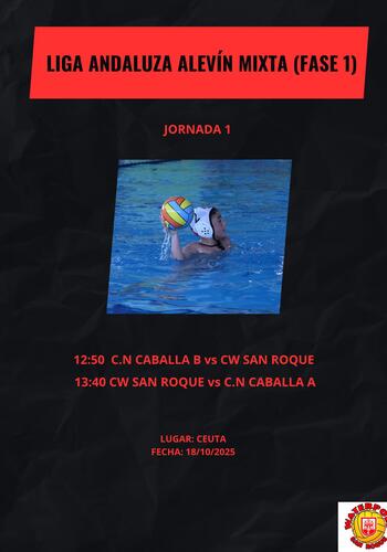 El Club Waterpolo San Roque está inscrito en el Grupo D de la VI Liga Andaluza Alevín Mixta de este deporte. Forman parte también de este grupo los dos equipos ceutíes y el Emalgesa Algeciras, y los cuatro disputarán esta primera jornada liguera en las instalaciones de la ciudad norteafricana.