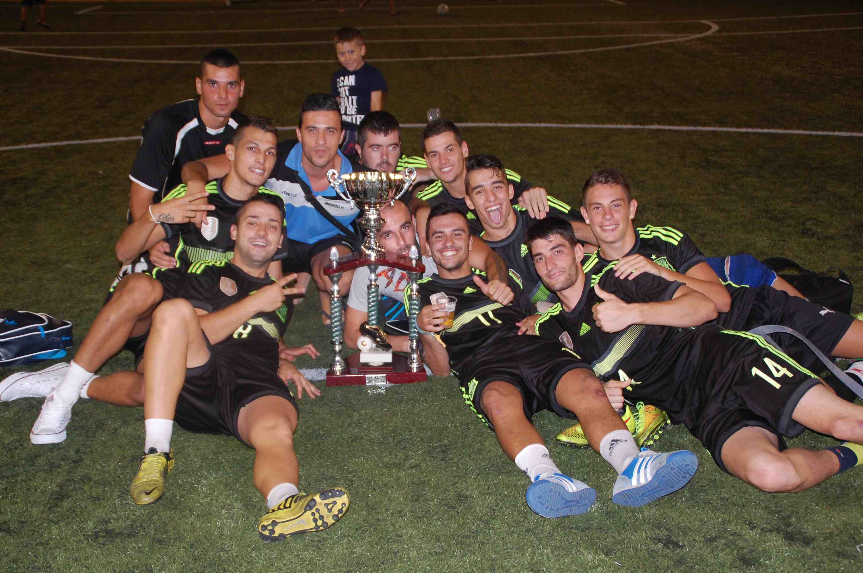 El V Trofeo de Fútbol 7 organizado por las cofradías de Oración del Huerto y Angustias tuvo anoche una final sanroqueña, al enfrentarse los equipos de Gorositos y Protección Civil. El Gorositos se hizo con la victoria de un torneo que se ha disputado a lo largo de cinco semanas en el campo de césped artificial del Polideportivo Municipal Manolo Mesa.