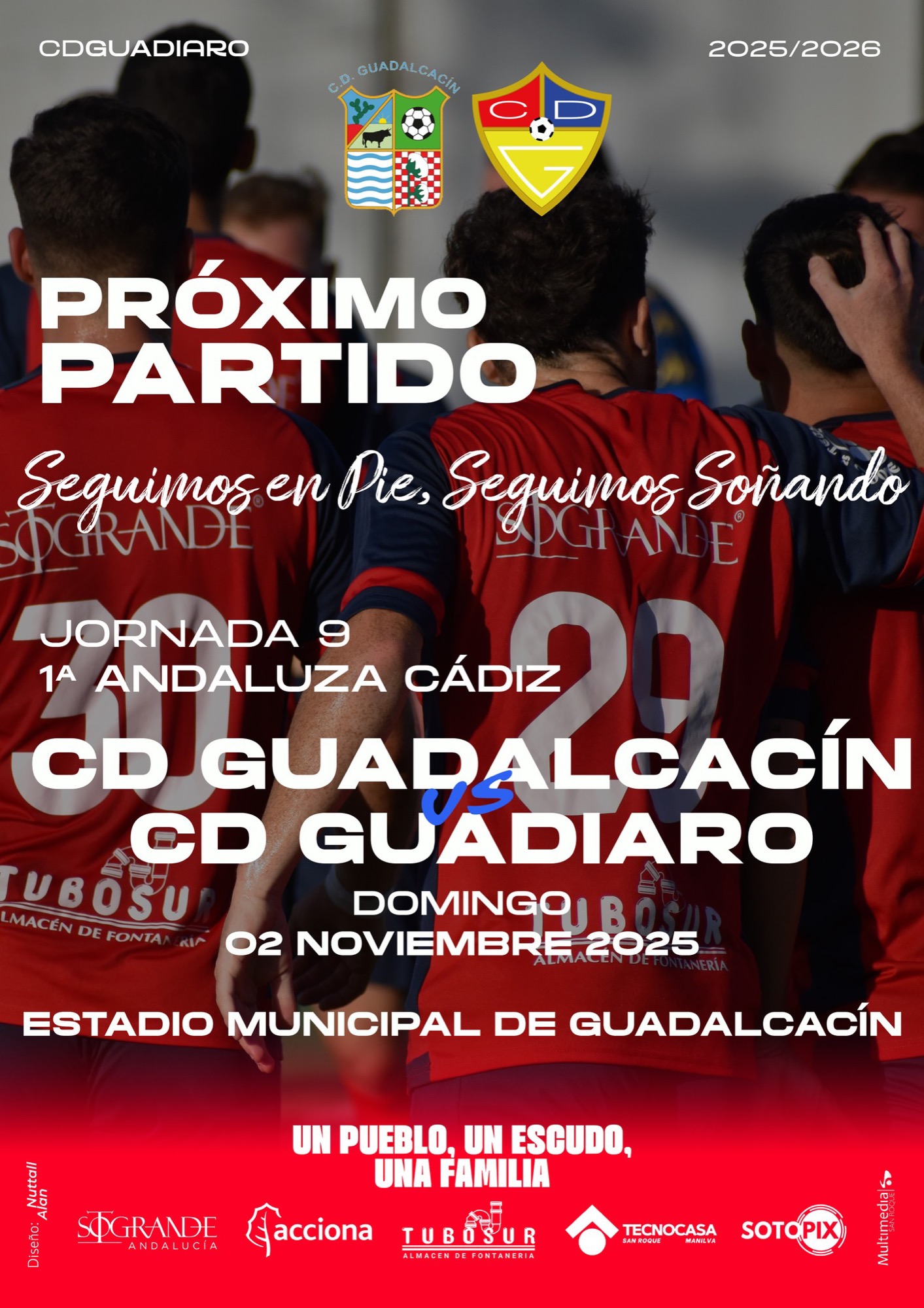El Estadio Municipal de Guadalcacín acogerá este domingo a mediodía el partido entre el CD Guadalcacín y el CD Guadiaro, correspondiente a la jornada novena de Primera Andaluza Cádiz. El equipo jerezano se sitúa en el cuarto puesto de la tabla, mientras que el conjunto granota va décimo quinto, un penúltimo lugar de la clasificación que no se corresponde con la calidad que atesora.