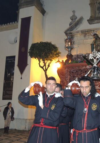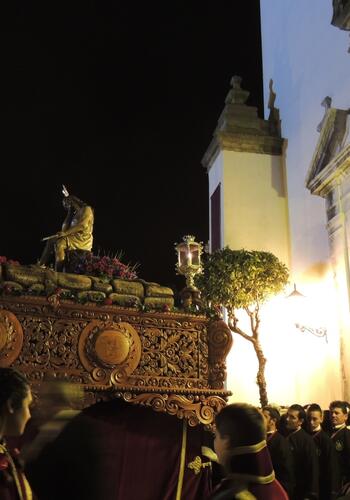 La Venerable Cofradía del Cristo de la Humildad y Paciencia, conocido como “el Cristo de la Caña”, y Nuestra Señora de la Esperanza han protagonizado el Martes Santo en el Casco de San Roque. Partió a las 22.00 horas de la Parroquia de Santa María La Coronada, acortando su recorrido por temor a que lloviera.