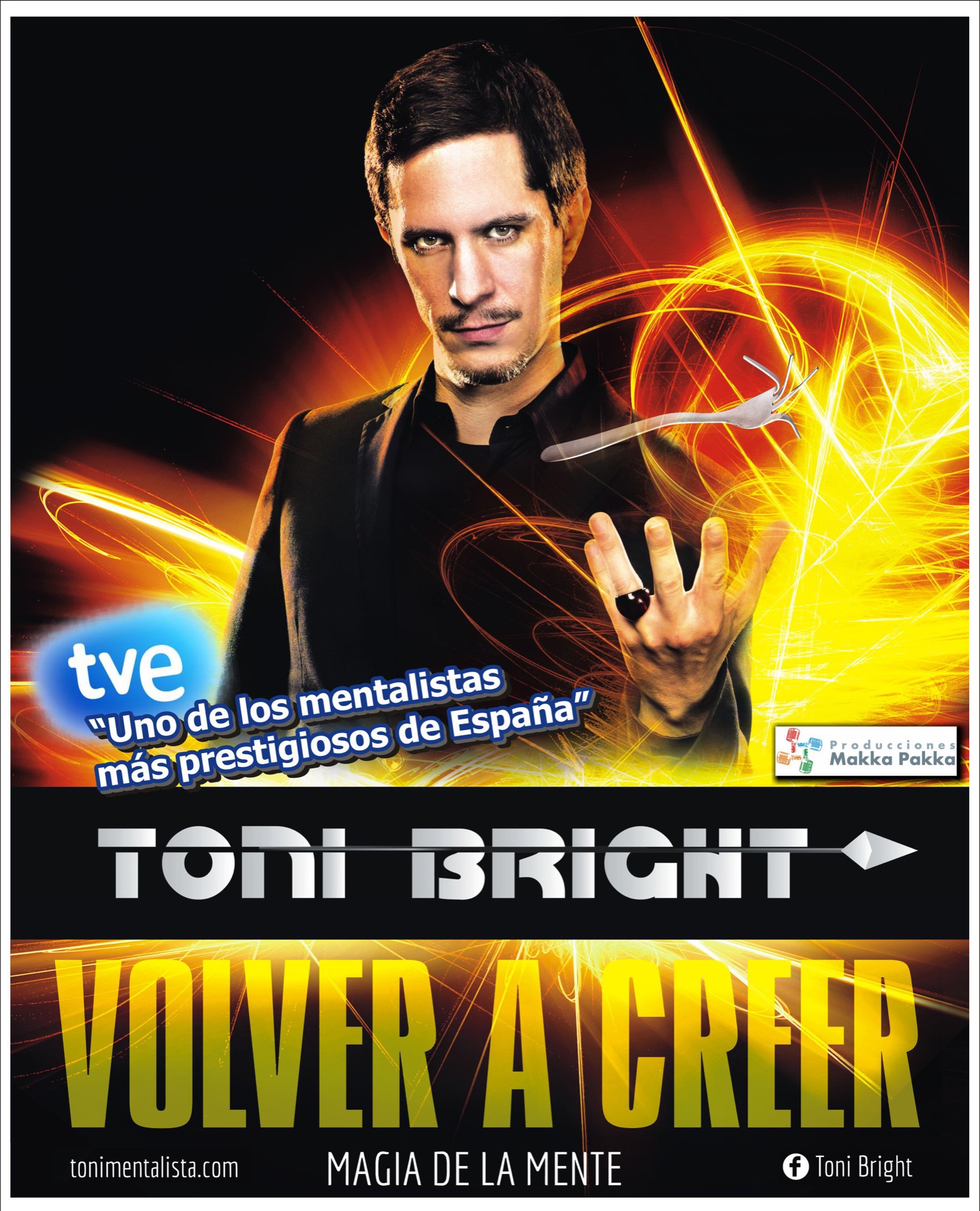 Toni Bright es uno de los mentalistas (mago de la mente) con mejor reputación de toda España. Es capaz de sorprender y hacer disfrutar en cada una de sus actuaciones, dejándo boquiabierto al verle doblar cucharas o tenedores, moviendo objetos con el poder de la mente, leyendo la mente del público, o incluso haciendo aparecer duendes o contactando con espíritus...