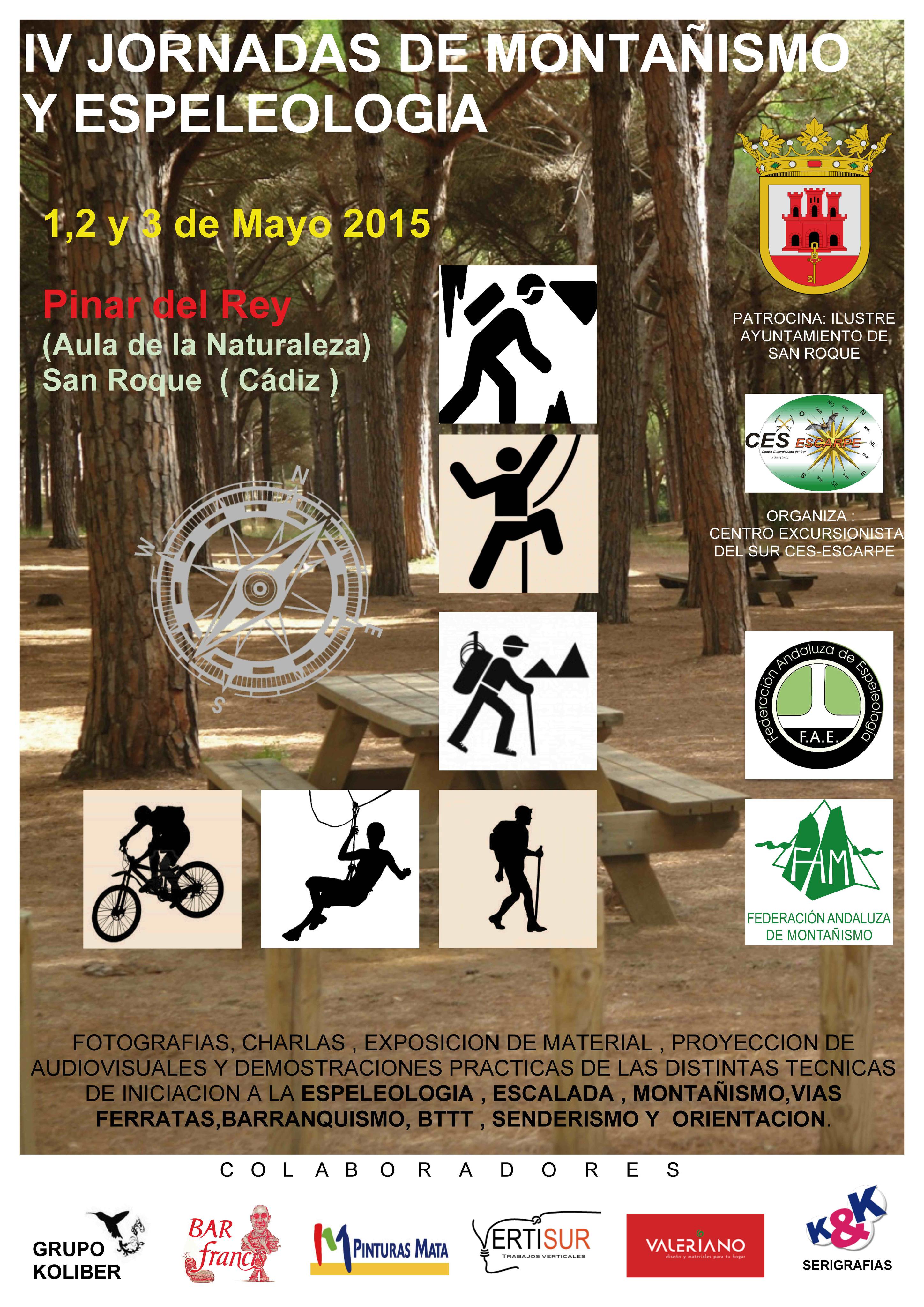 El Pinar del Rey acogerá los próximos días 1, 2 y 3 de mayo las IV Jornadas de Divulgación de los Deportes de Montaña y Espeleología, que organiza el Centro Excursionista del Sur Escarpe de La Línea con la colaboración del Ayuntamiento sanroqueño. El objetivo es divulgar algunos de los deportes relacionados con la montaña, como la espeleología, el alpinismo, la escalada, el descenso de cañones y el senderismo. La asistencia es gratuita.