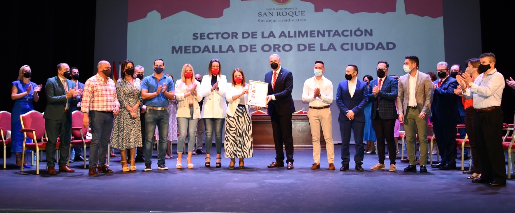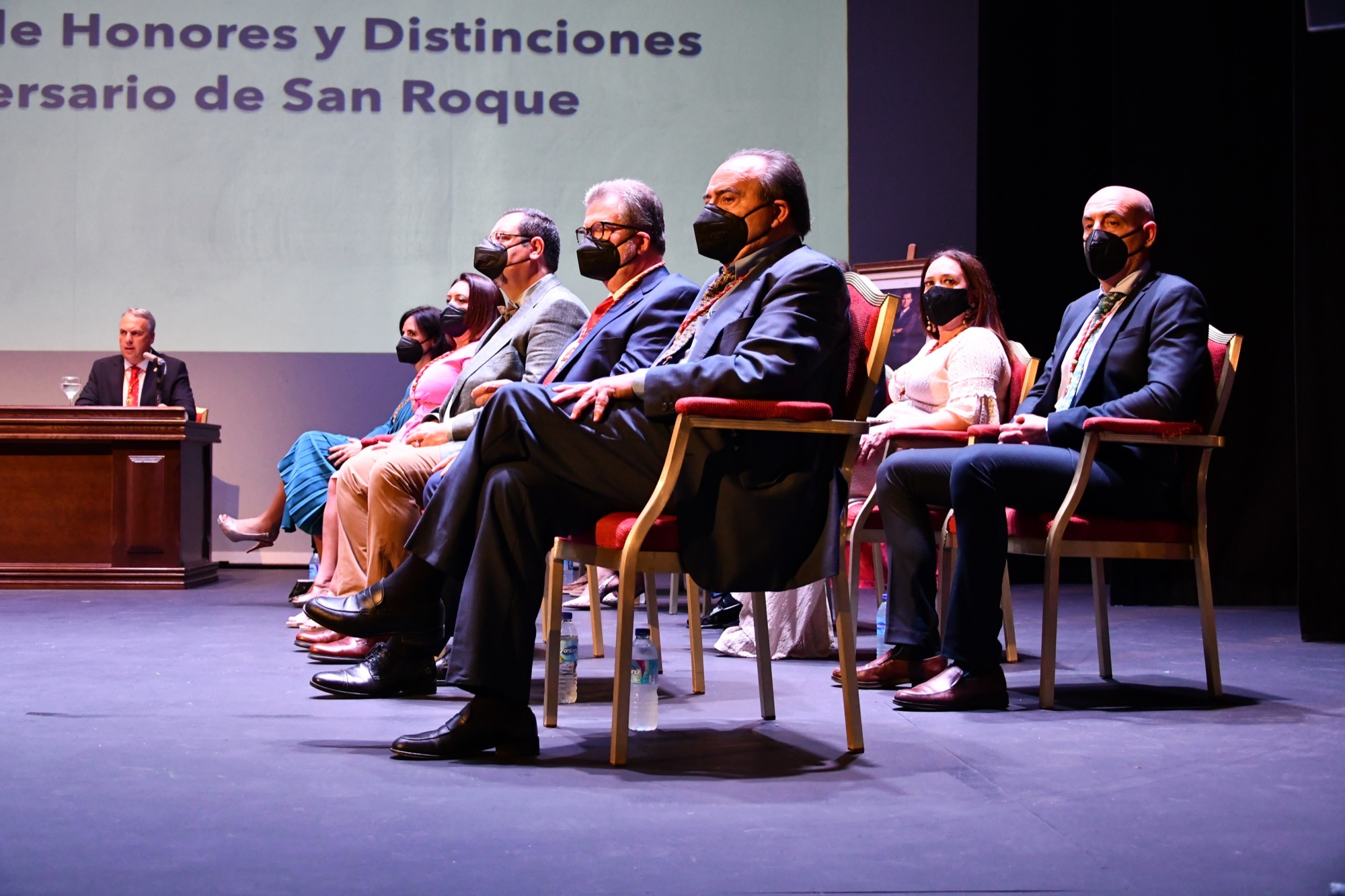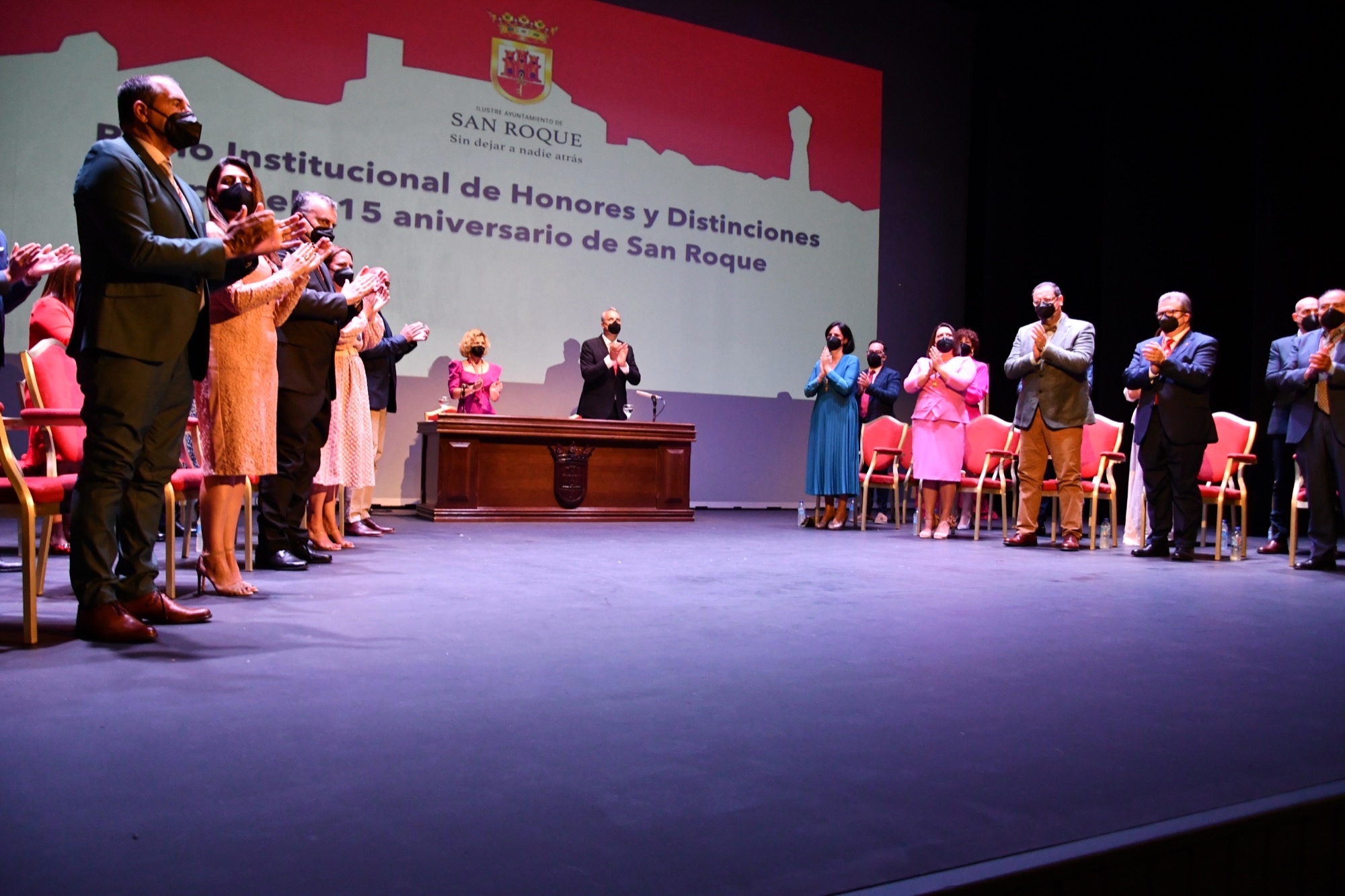 El Teatro Juan Luis Galiardo ha acogido en la mañana de hoy, viernes, el Pleno Institucional con motivo del 315 Aniversario de la Fundación de San Roque, donde además de los reconocimientos correspondientes a 2021 se han otorgado los que se aprobaron para 2020 y no pudieron ser entregados debido al confinamiento por la pandemia de COVID-19. En total, se trata de ocho Medallas de Oro de la Ciudad, un título de Hijo Predilecto, otro de Miembro Honorario de la Corporación, uno de Sanroqueña del Año y siete Menciones de Honor, tres de ellas a título póstumo.