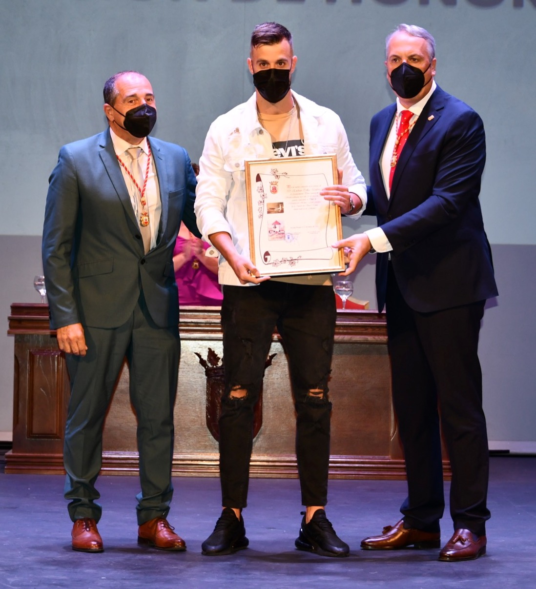 En lo referente a la Medalla de Oro para las personas voluntarias, entregaron los reconocimientos el alcalde y la concejal María del Mar Collado. En cuanto a la confección de mascarillas, los representantes fueron María José Moreno, Alejandro Andana, Ana María Figueroa, Lina Flores, Isabel Umbría, Mayte Lara y Eloisa Fernández; a los agricultores que colaboraron en la desinfección del municipio los representaron Juan Leiva y José Vázquez; y los comercios solidarios fueron representados por María José Paredes, de Mercería Carlos.