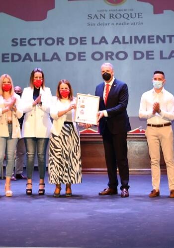 Respecto a la Medalla de Oro para el sector de alimentación, los reconocimientos fueron entregados por el alcalde y la teniente de alcalde Mercedes Serrano. Recogieron, por el supermercado Mercadona, Juan Carlos Casielles, Rafael Piñero y José Manuel Celva; de Supermercados Ruiz Galán, la propietaria y directora general Raquel Ruiz Galán, así como Estela Albalá Cuevas, y Ana Chacón Castillo; de Royma, su propietario, Manuel Gutiérrez Rojas; como representante de la tienda Manuel Gavira, su propietario Manuel Gavira Gómez y Elena Mendes de Soussa; y representando a la logística, el profesional del sector José Antonio Triviño.