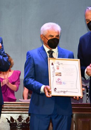 Y, por último, el nombramiento como Hijo Predilecto de la Ciudad se entregó a Juan Quirós Segura, de manos del alcalde y del concejal Óscar Ledesma.