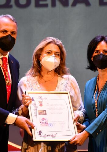 Seguidamente, se entregaron las menciones de honor, comenzando por la de Ana Cazorla Garín, que fue entregada por la edil Mónica Córdoba junto al alcalde.