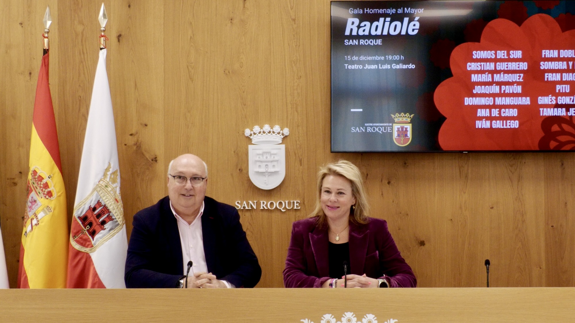La concejal de Igualdad y Asuntos Sociales, Eva Gil, y el director de Radio Algeciras, Cándido Romaguera, han presentado la Gala Homenaje al Mayor de Radiolé, que se podrá disfrutar el próximo 15 de diciembre en el Teatro Juan Luis Galiardo. Además de las actuaciones musicales de cantantes y grupos que suelen sonar en dicha cadena musical, habrá sorteos y regalos para las personas asistentes.