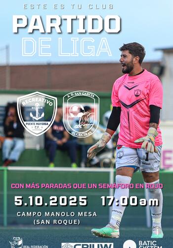 El Municipal Manolo Mesa albergará el domingo por la tarde el enfrentamiento entre el Recreativo Puente Mayorga y el San García Agrupación Deportiva, partido correspondiente a la tercera jornada de Tercera Andaluza Cádiz Grupo 1.