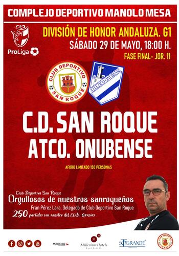 El CD San Roque se jugará el “ser o no ser” de División de Honor Andaluza en los dos encuentros que restan para el final de la temporada. Mañana, sábado, recibe al Onubense, 2º en la tabla clasificatoria, en un choque que arrancará a las 18 horas.