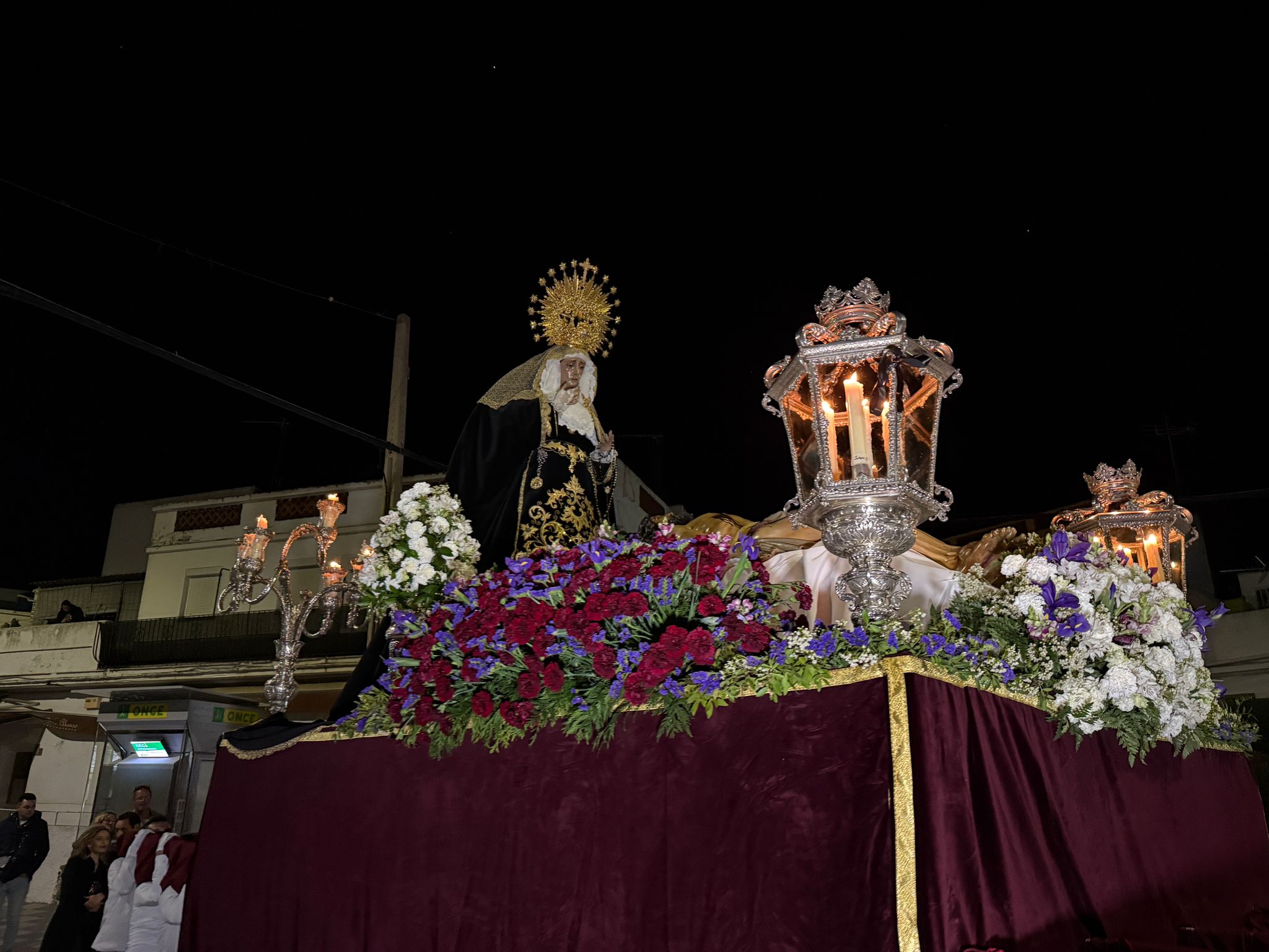 El Santo Entierro de Nuestro Señor Jesucristo y María Santísima de los Dolores protagonizan la salida procesional del Viernes Santo en Guadiaro. Tras la misa, la salida tuvo lugar desde la parroquia a las 22:00 horas.
