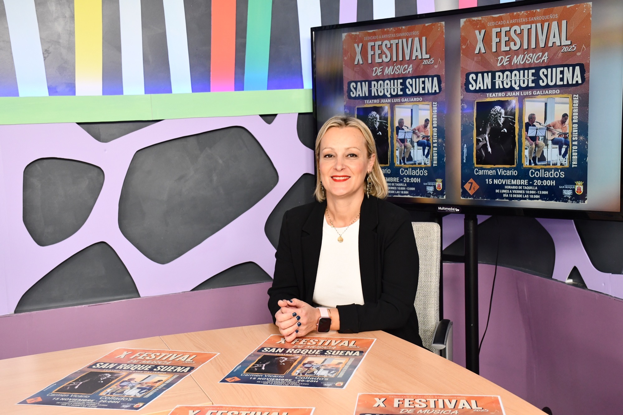 La teniente de alcalde delegada de Cultura, Ana Ruiz, ha presentado la décima edición del Festival de Música “San Roque Suena”, que este año estará protagonizado por los sanroqueños Carmen Vicario y el dúo Collado's, compuesto por Fran Collado padre e hijo. La actividad tendrá lugar el próximo sábado 15 de noviembre a partir de las 20.00 horas.