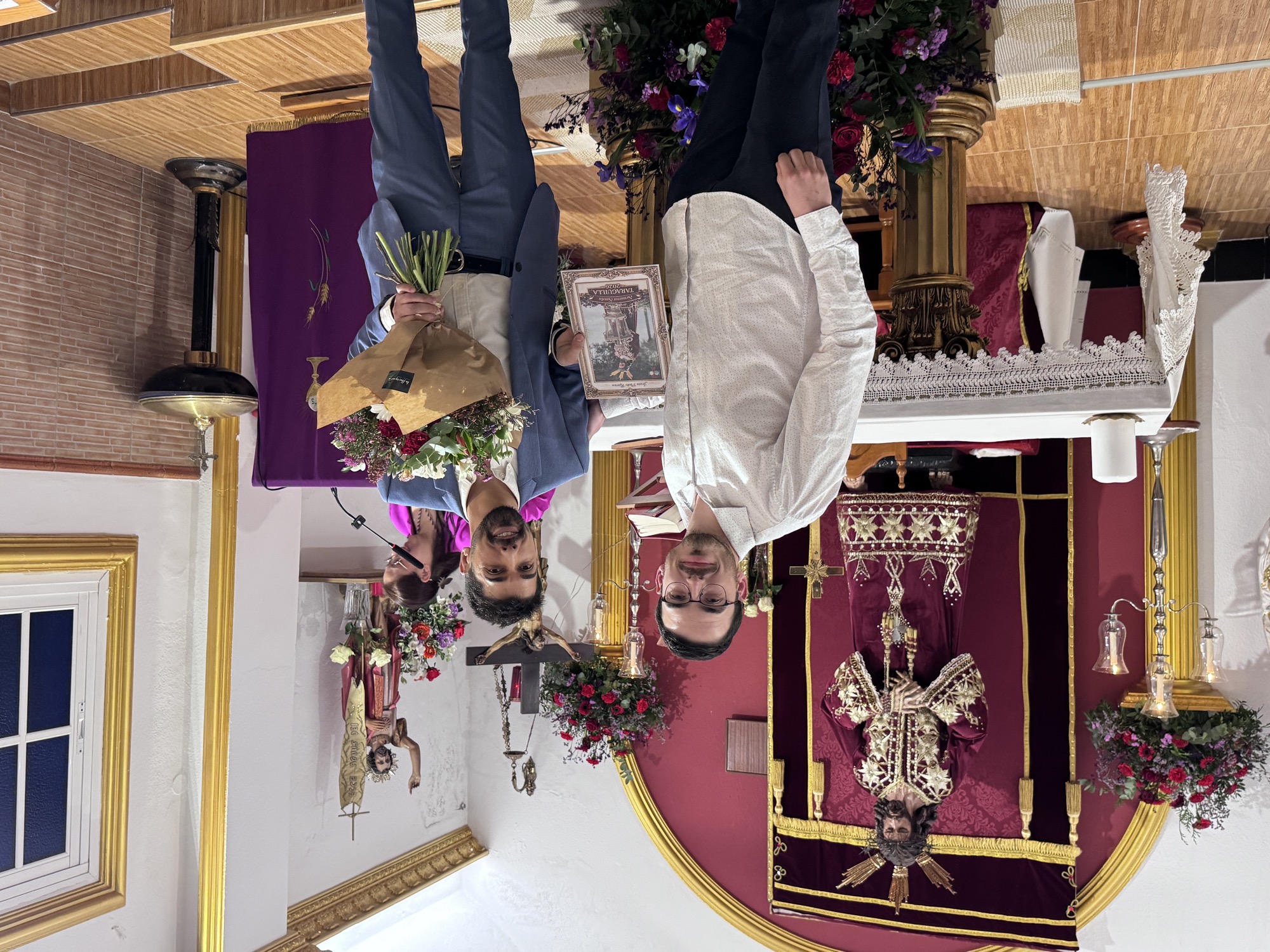 Pinto tuvo la oportunidad hace unos años de encargarse del exorno floral del Cristo del Medinaceli de Madrid, ya que junto a su madre Dolores Ramos, se dedica a la floristería en su tienda en Taraguilla.