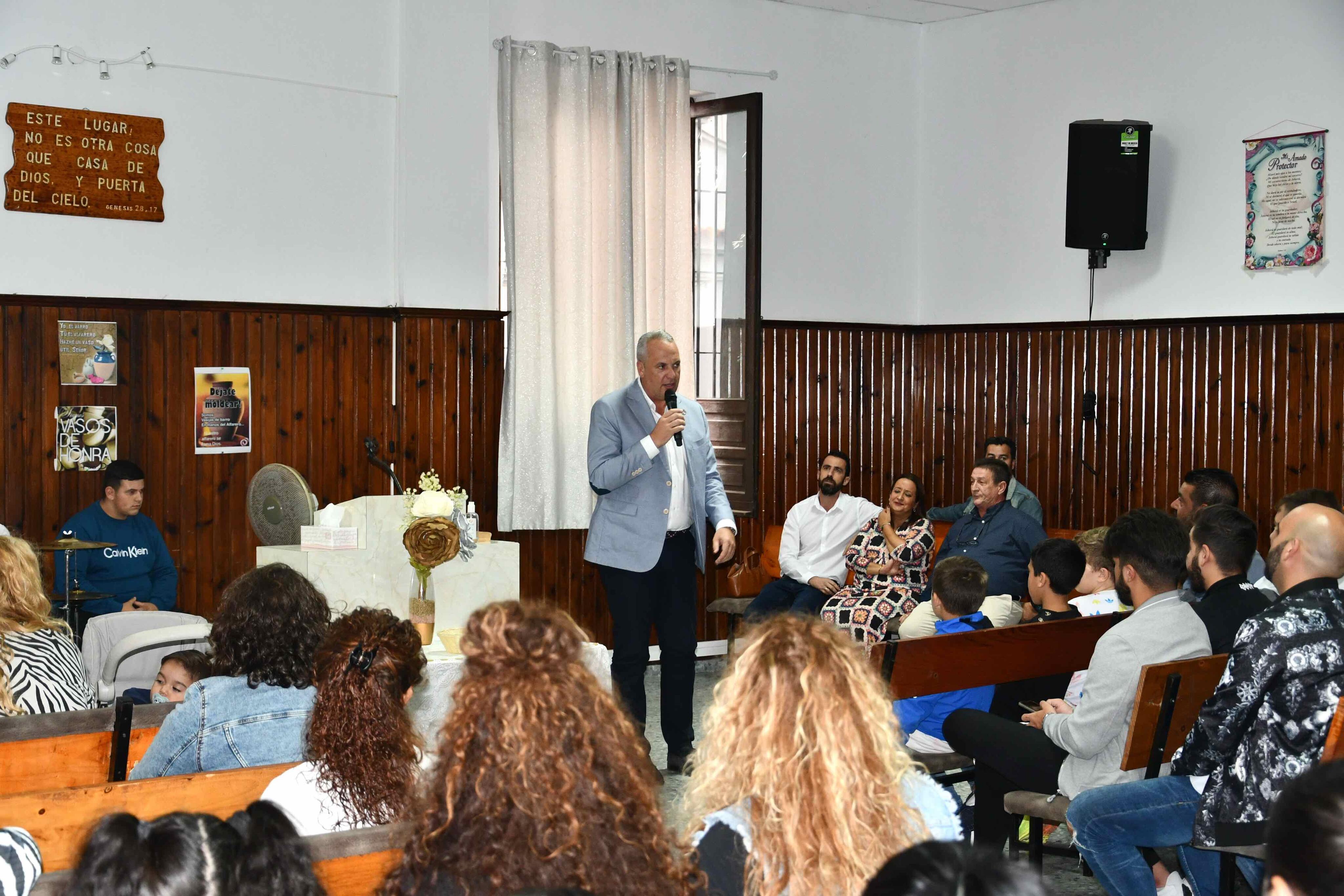 Autoridades municipales participaron en la tarde de ayer, martes, en un encuentro con los jóvenes de la Iglesia Evangélica Filadelfia, que se desarrolló en el local cedido por el Ayuntamiento a esta confesión religiosa en el edificio de la antigua AISS. Allí pudieron conocer algunos de sus proyectos de cara al próximo año.