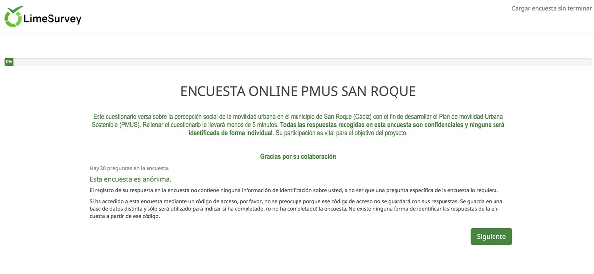 https://consultoralomon.limequery.com/655516?lang=es se podrá acceder de manera completamente anónima a una serie de preguntas que facilitarán a los técnicos responsables de la elaboración del PMUS el conocimiento real y las preferencias y sugerencias ciudadanas sobre esta importante herramienta de futuro para el municipio. No lleva más de 5 minutos y las respuestas serán totalmente anónimas.