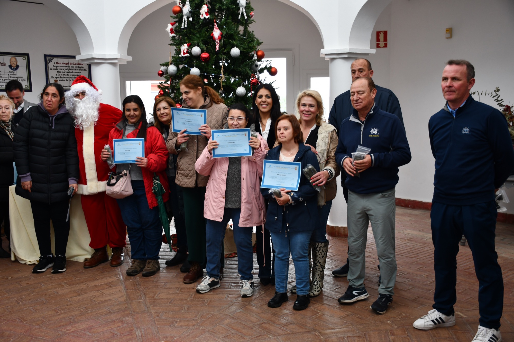 Ana Vega lamentó que, debido a la lluvia, por segundo año consecutivo no ha podido desarrollarse el Torneo de Navidad de Golf Adaptado, previsto para este miércoles, pero celebró el gran ambiente de la entrega de diplomas y obsequios, en los que participaron Papá Noel y el equipo de La Cañada, al que siguió un almuerzo ofrecido por el club. Comentó la presidenta de la entidad que “cada miércoles tienen mucha ilusión por venir, y algunos se ha quedado tristes porque lo que querían hoy era jugar. Para nosotros es una gran alegría verles la cara de felicidad cada vez que vienen. Se lo merecen todo”, concluyó.