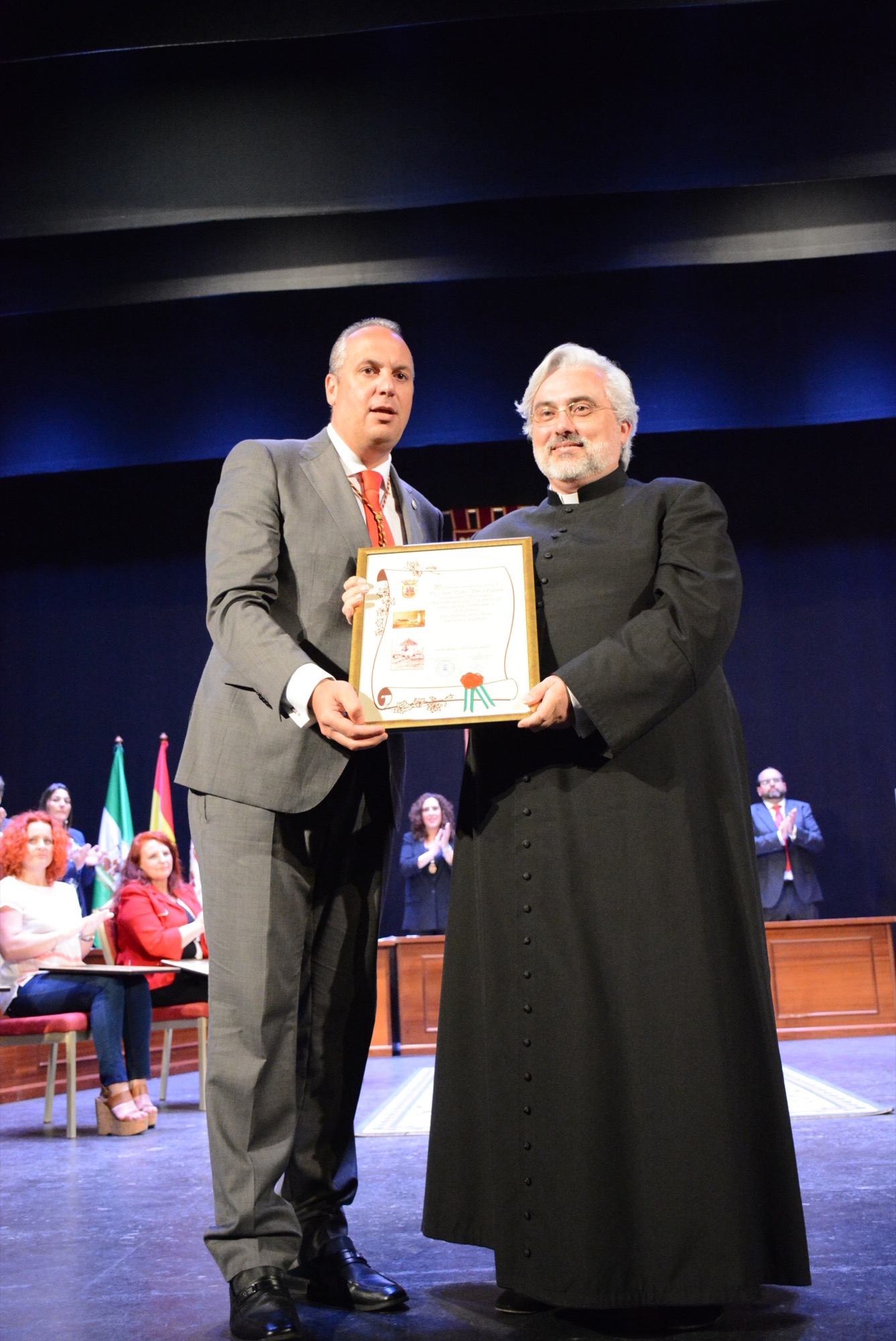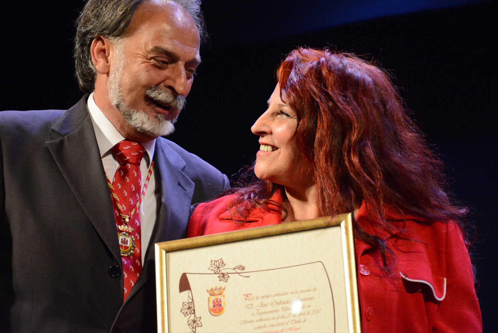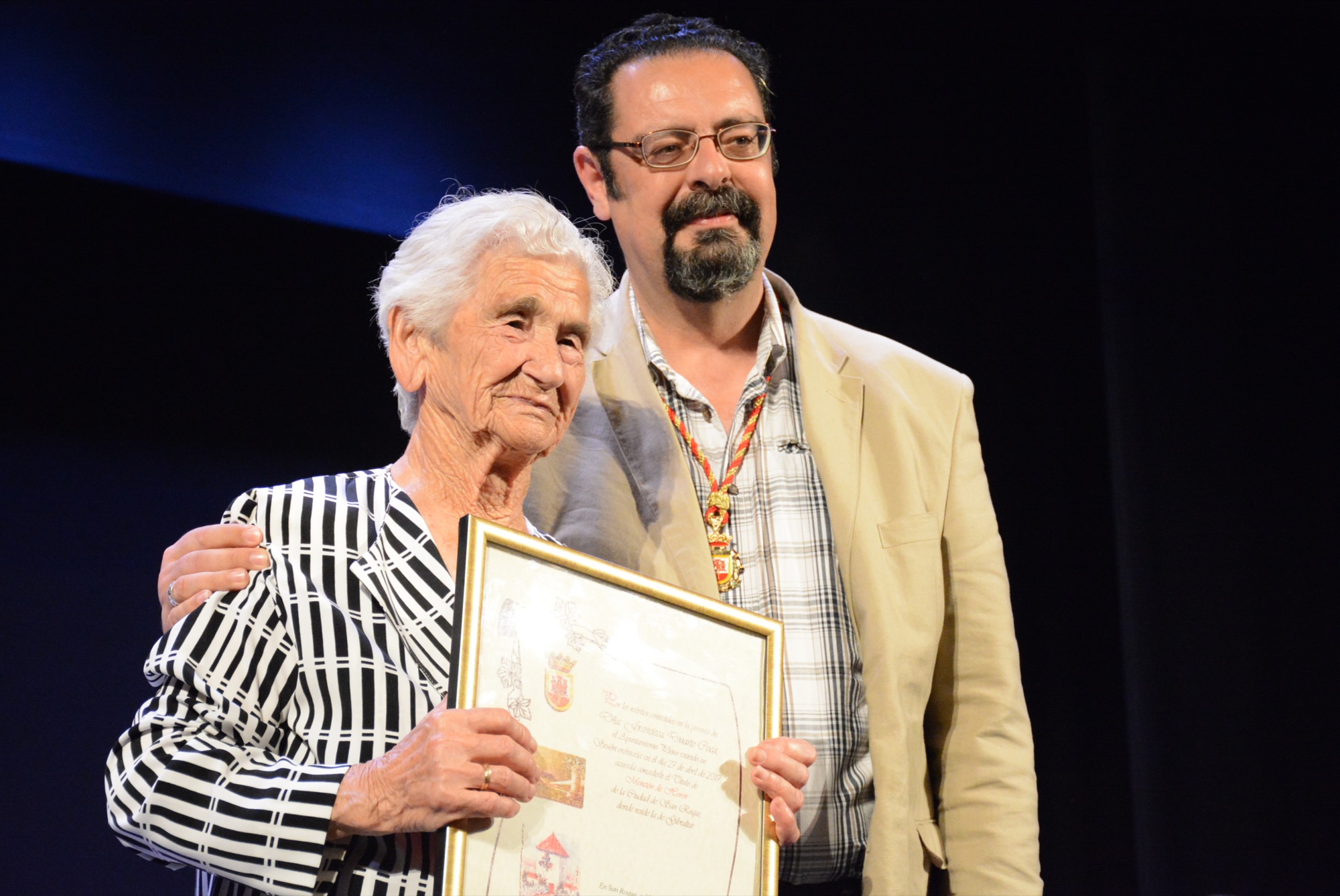 Es a esa concepción de la ciudadanía a la que han contribuido y contribuyen Francisca Duarte con su lucha social, Productos Antoñita con su dedicación empresarial, Andrés Villena y Patricia Gavira con su actividad deportiva, la Asociación de Apoyo Mutuo con su voluntariado, José Lara con su trabajo político, Juan Pedro Varo con su labor pastoral, Juan García con su actividad profesional y la Escuela de Hostelería con su trabajo docente; entidades y personas con las que me siento honrado de compartir este momento tan emotivo.