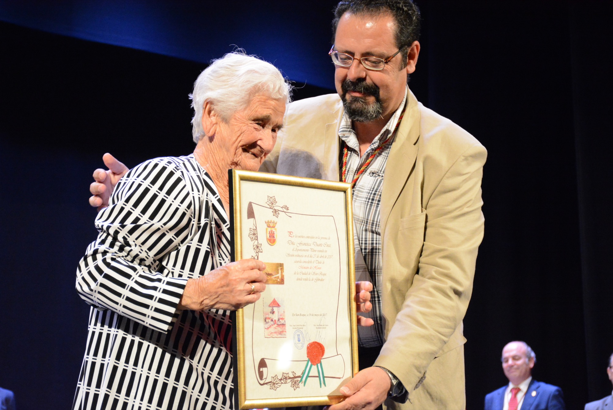 Durante dicho Pleno Institucional se nombraron dos Hijos Adoptivos y se entregaron ocho Menciones de Honor. Así, fueron nombrados Hijos Adoptivos Juan Pedro Varo Salguero, José Lara Menacho; y recibieron sendas Menciones de Honor Juan García Bernal, Francisca Duarte Coca “Quica”, Productos Antoñita, IES Escuela de Hostelería de San Roque, Andres Villena Rodriguez, Asociación Apoyo Mutuo, José Orihuela Guerrero y Patricia Gavira Collado.