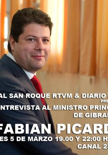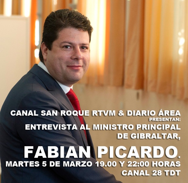 Canal San Roque Radio Televisión Municipal emitirá esta tarde a las 19 horas una entrevista con el ministro principal de Gibraltar, Fabian Picardo.