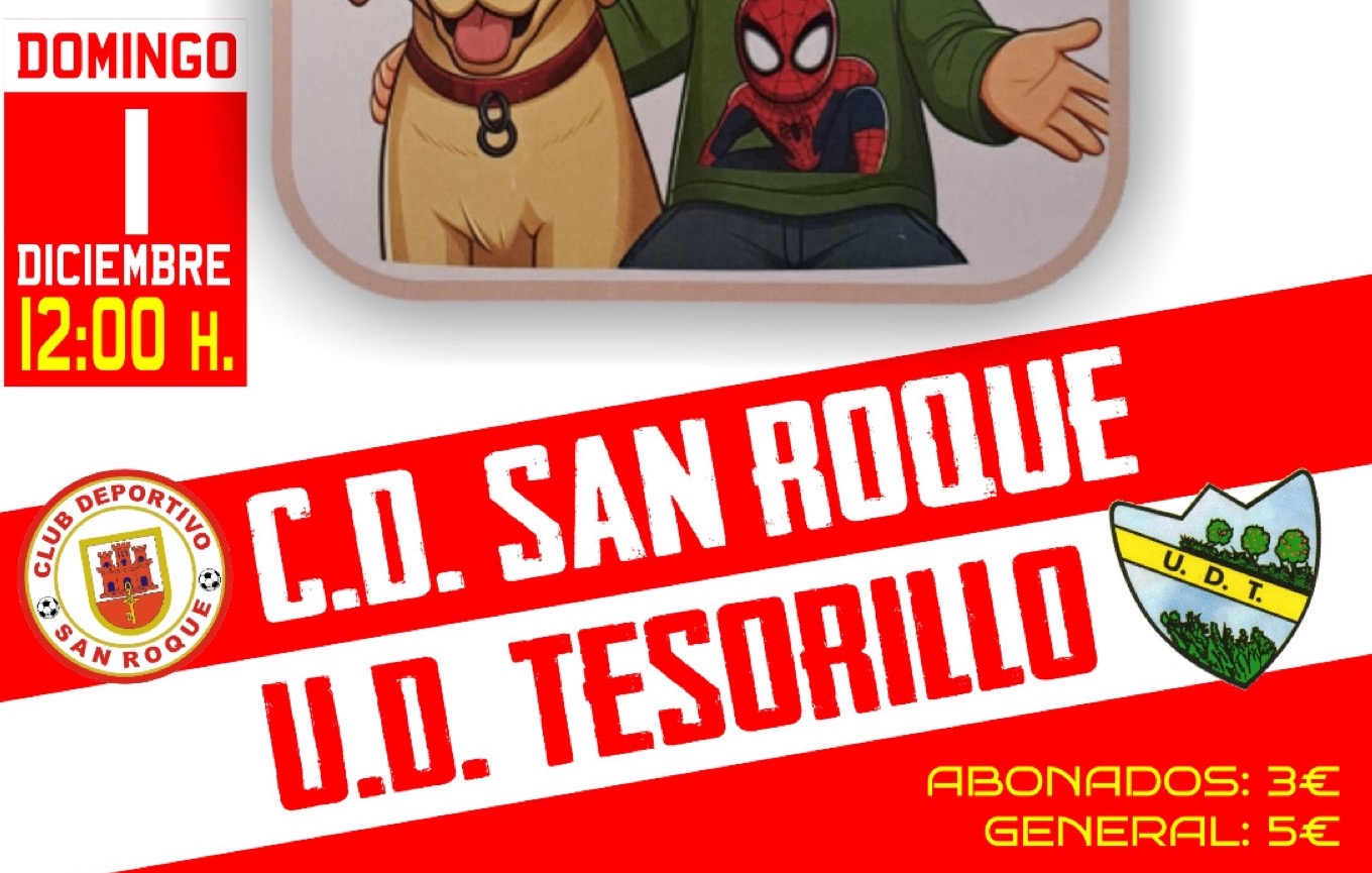 El Municipal Manolo Mesa acogerá este domingo a mediodía el partido entre el Club Deportivo San Roque y la Unión Deportiva Tesorillo. Todos los asistentes pagarán entrada, siendo de 3 euros para los abonados y de 5 euros para el resto, ya que la recaudación se destinará íntegramente a la familia de Óliver, un niño sanroqueño que necesita el apoyo de un perro de asistencia, cuyo coste de entrenamiento es de 20.000 euros.