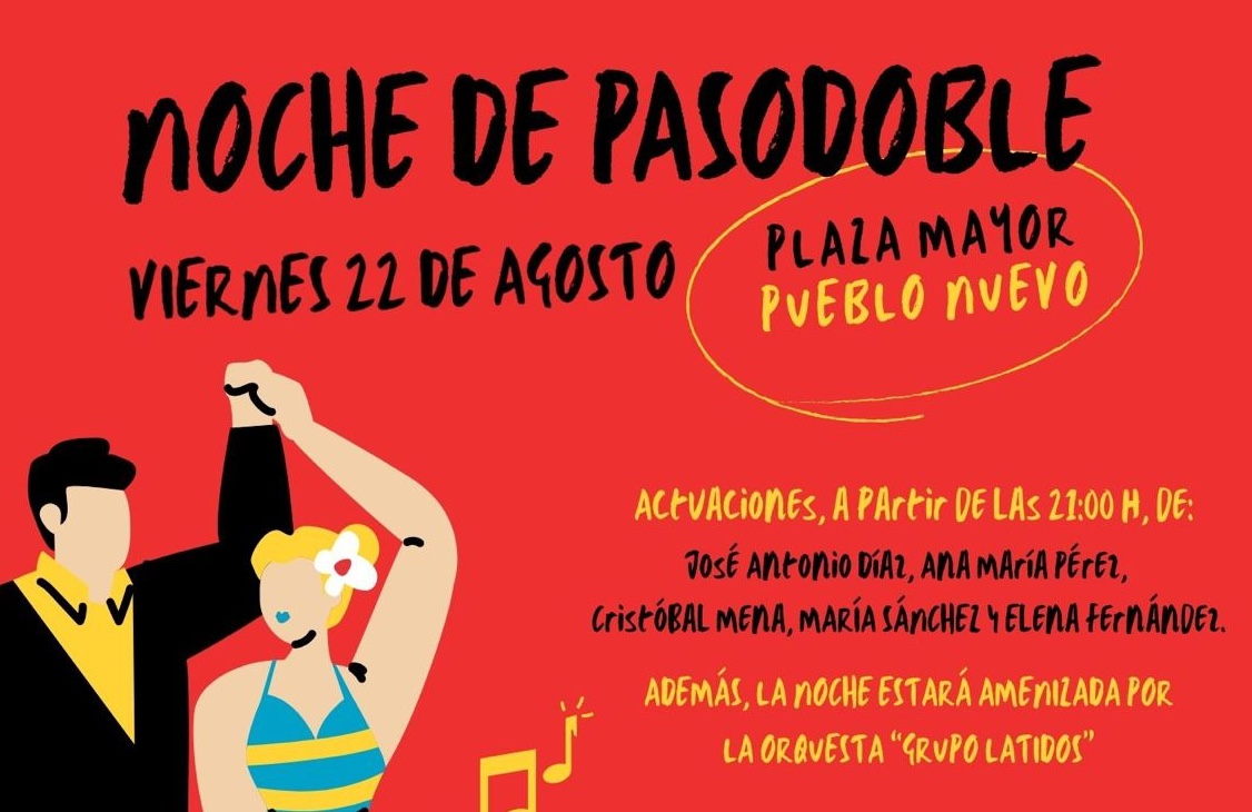 El próximo viernes 22 de agosto, a partir de las 21:00 horas, los amantes del pasodoble tienen una cita en la Plaza Mayor de Pueblo Nuevo. Se trata de la actividad “Noche de Pasodoble”, donde también se sortearán premios.