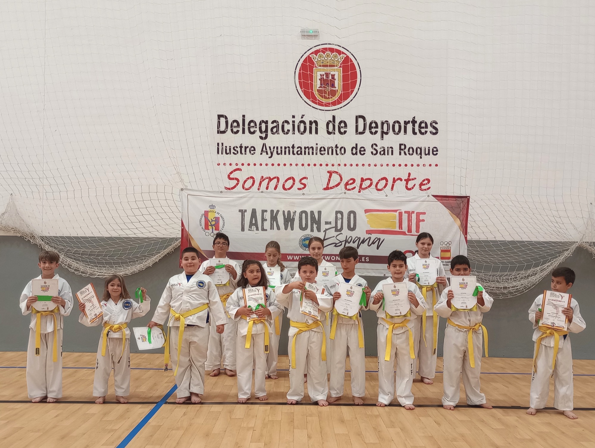El pabellón Ciudad de San Roque acogió este sábado 15 un examen de Taekwon-Do ITF para todos los cinturones de color de hasta 14 años. El Club Deportivo Do-San ha sido el anfitrión de esta prueba, donde con la participación de la Academia de Artes Marciales de Los Barrios, han aglutinado a más de 200 jóvenes taekwondistas que se animaban a promocionar a un nuevo grado.